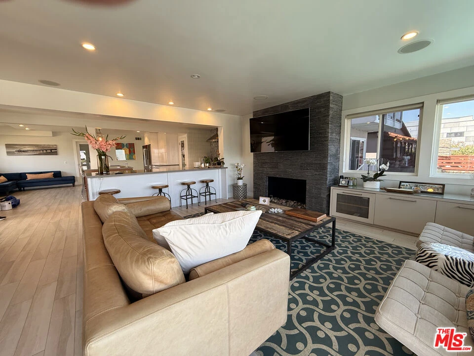 Ideal rental in prestigious MB Hill section. Great opportunity near downtown MB, Gelsons, Larsson Park, and easy access south into Hermosa Beach. This four bedroom remodeled home has a spacious open floor plan, with a large great room and full size dining room. It is available partially furnished. The gourmet kitchen has a two large islands, wine fridge, Viking stove and a breakfast area, as this wide open space is the hub of the house. There are two bedrooms and one bath upstairs and two bedrooms down, one with a private bath and a separate powder room. Italian porcelain tiles throughout. Steam shower in the primary bath. Walk in laundry room on main level. Perched up to command views over the pool and to downtown LA, the home gets great light with 180 degrees of sun, as it faces both East and West. Looking to start June 7th approximately.