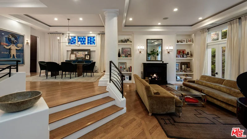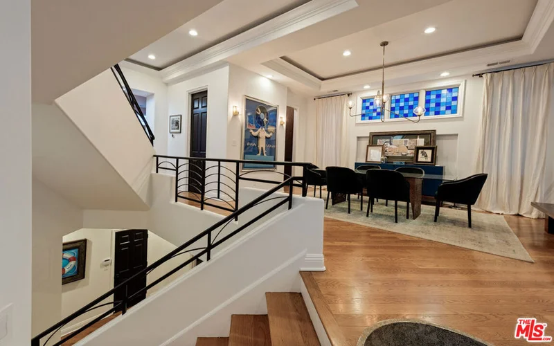 Step into a beautifully designed living area with soaring ceilings, expansive windows, and real oak hardwood floors throughout. Floor to ceiling French doors fill the home with natural light and open to lush greenery, creating seamless indoor-outdoor flow. Architectural ceilings with recessed lighting, a fully integrated LED lighting system, crown molding, and stately columns add timeless character. The open split-level layout is enhanced by custom wrought-iron railings. A Lutron RadioRA smart lighting system provides effortless ambiance control, and a built-in Sonos sound system delivers immersive audio throughout. The generous living space easily accommodates a grand piano and multiple seating areas, making it ideal for entertaining or everyday living. Neutral tones and curated finishes complete the refined design. The chef's kitchen blends modern style with warm natural textures. A dramatic waterfall edge island crafted from Taj Mahal quartzite offers ample prep space, integrated storage, and seating. Custom walnut cabinetry extends to the ceiling for a sleek built-in look and maximum storage. Additional Caesarstone surfaces complement the quartzite, paired with a full height stone backsplash and minimalist hardware. A professional grade Wolf range and Sub-Zero refrigerator provide premium performance and seamless integration. Matte black pendant lighting adds architectural interest. The oversized island includes an integrated sink with a statement faucet and luxury fixtures. Adjacent floor to ceiling French doors and a Juliet balcony bring in abundant natural light. The spa inspired primary bathroom features a floating dual sink vanity, designer lighting, custom tile flooring, a freestanding soaking tub, and a glass enclosed walk-in shower with Brizo fixtures. Marble surfaces and designer tile selections create a serene retreat. Bathrooms throughout the home are predominantly finished in marble for cohesive luxury. Each generously sized bedroom includes its own en-suite, appointed with marble finishes and designer tile for a refined and cohesive look. A garage level guest suite includes a spacious living area, versatile bonus space, and a stylish bar overlooking the patio, offering flexible living and entertaining options. Crowning the top is a double decker rooftop capturing panoramic ocean, city skyline, and mountain views. Ideal for entertaining, sunset lounging, or morning coffee. Spanning four levels with a private 4-stop elevator, designer finishes, integrated smart home features, fully integrated LED lighting, and discreet home protection, this residence delivers exceptional coastal city living. Located just moments from boutique shopping, restaurants, and the sand, the home also benefits from 24-hour security patrol for added peace of mind.