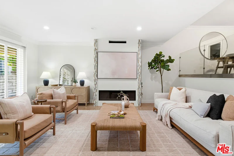 Stunningly renovated townhome overlooking a beautifully manicured courtyard, tucked away on a quiet cul-de-sac in the heart of Silicon Beach. This one-of-a-kind 3-bedroom, 2.5-bath residence offers an exceptional blend of privacy, space, and modern design, complete with a direct access private two-car garage and EV charging. Inside, the bright and airy layout features terrazzo-style tile and beautiful hardwood floors throughout, soaring ceilings, recessed lighting, and custom built-ins. The spacious living room opens directly to a private patio, creating seamless indoor-outdoor living ideal for relaxing or entertaining. The reimagined chef's kitchen is a true highlight, featuring quartz countertops, a custom backsplash, premium Thermador and Sub-Zero appliances, abundant custom cabinetry, and an adjacent dining area. A dedicated beverage station with wine fridge is perfect for hosting or everyday living. The lower level includes a well-appointed bedroom and powder room, while the upper level offers two massive bedrooms plus a versatile loft/bonus space. The expansive primary suite is truly unique, boasting a large walk-in closet with custom built-ins and a luxurious, spa-inspired en-suite bathroom with dual vanities, a separate shower, and a deep soaking tub. The second upstairs bedroom enjoys peaceful courtyard views, its own private, tree-shaded balcony, and a distinctive spiral staircase leading to a versatile bonus loft. Additional highlights include an upstairs laundry room, ample storage, central air and heat, a tankless water heater, and access to the community pool and lushly landscaped courtyard. Ideally located just minutes from the Marina, the beach, bike paths, dining, and all that Silicon Beach has to offer.