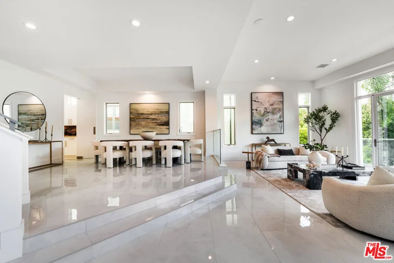 Recently completed multi-million-dollar renovation elevates this four-story architectural residence, discreetly nestled on a cul-de-sac walk street that evokes the serenity of a hidden park. This exceptional home offers an atmosphere of tranquility just steps from the beach and the Ballona Lagoon, and moments from the Marina's premier dining, boutique shopping, theaters, and picturesque canal paths. Thoughtfully designed with 4 bedrooms and 5.5 baths, the residence showcases an open-concept layout bathed in natural light, featuring Onyx white porcelain tile floors, refined custom finishes, and recessed LED lighting throughout. The gourmet kitchen is a masterpiece of design, appointed with Quartzite Naica countertops, a waterfall island, marble Arabescato Silver Honed backsplash, luxe high-gloss and soft-close cabinetry with maple and birch interiors, and Wolf/Sub-Zero appliances. A sit-up island bar and adjoining kitchen dining area complete with a cozy fireplace and view patio create an inviting central gathering space that flows seamlessly into the butler's pantry, spacious dining area, and living room with a stunning fireplace and a balcony overlooking the walk street park. The upper level is anchored by an expansive primary suite, offering a tranquil sitting area, private terrace with greenbelt park views, and a spa-inspired bath featuring white-oak cabinetry, Carrara marble accents, dual sinks, and a generous walk-in, designer closet. Two additional upstairs bedroom suites are enriched by natural light and elevated views. The first floor hosts a maid's/guest suite and a large family room ideal for entertaining, with flexible space for an office, wine room, or playroom. A spacious private patio completes this level, providing an exceptional indoor-outdoor living environment. An elevator services all floors, including the top-level office/loft/gym/entertainment, flexible space, which opens to two expansive rooftop decks showcasing sweeping city, mountain, and peek-a-boo ocean views. Recent enhancements include new stucco, energy-efficient windows and doors, a PVC roof, updated landscaping and lighting, and a 3-car garage with new epoxy flooring. More than a home, this is a striking statement of modern design, comfort, and craftsmanship on the coveted Silver Strand.