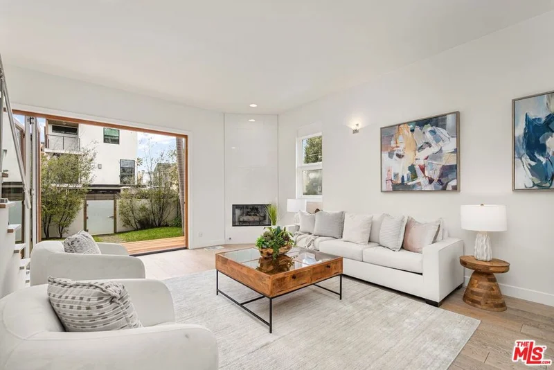 Just one block to the beach and two blocks to the main channel this 2-story beautifully renovated home has all that you've been waiting for. Open and airy with light streaming in from all directions, there is a huge grassy front yard and a very open spacious side yard perfect for indoor/outdoor entertaining. Hardwood floors throughout with an open living room featuring a gas fireplace, dining space and a gourmet kitchen boasting custom wooden cabinetry, gas stainless cooktop and appliances plus large stone counters. The primary suite is a luxurious space with a gas fireplace, vaulted ceilings and a balcony facing the walk street. The ensuite spa like bathroom has a walk in shower and its own private balcony. The second bedroom is completely separate with ample closet space, the third bedroom is perfect for a private office or small guest bedroom, with an office nook just outside. An impressive roof top deck with mountain and ocean views. Very rare 2 car side by side private garage. This lovely home is located on a very charming walk street with easy access to all the neighborhood has to offer.