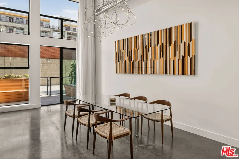 A rare architectural statement in Marina del Rey's coveted Arts District, this exceptional New York inspired loft has been masterfully reimagined with over $500,000 in bespoke, designer-level upgrades, creating a true one-of-one residence that outshines every other loft in the building. Soaring 17-foot ceilings and dramatic floor-to-ceiling glass flood the interiors with natural light, delivering a gallery-like ambiance equally suited to refined daily living and elevated entertaining. One of the few ground-floor homes, it also offers a private patio that seamlessly extends the living space outdoors, perfectly positioned moments from Abbot Kinney, the Venice Boardwalk, and the Marina waterfront. Every element was redesigned with uncompromising quality, from polished concrete floors on the main level to engineered hardwood upstairs accented by natural red oak details, smooth-finish walls, and automated 17-foot floor-to-ceiling curtains and sheers. A striking custom steel-and-glass staircase with sleek glass railings anchors the residence as a sculptural centerpiece. Statement design details include a Mooi copper designer light fixture, custom solid oak built-ins and furnishings, European luxury faucets and hardware, a floor-to-ceiling glass door in the secondary bedroom, and tailored patio seating. The home is fully integrated and wired for seamless modern living, featuring a Control4 smart home system that manages lighting, TVs, and built-in speakers, a whole-home sound system, newly installed wiring for audio/internet/automation, recessed LED lighting throughout, two large built-in televisions, and Nest climate control. The chef's kitchen is both functional and striking, showcasing custom walnut cabinetry, Caesarstone countertops with a full-height backsplash, and premium JennAir appliances including a column refrigerator and freezer, professional range, dishwasher, and microwave/convection oven, plus a rare true external exhaust ventilation system uniquely installed in this unit. Two bedrooms provide separation and privacy, with a tranquil primary suite offering a custom walk-in closet and a spa-inspired marble bath with floor-to-ceiling tile, designer vanity, premium fixtures, and a frameless glass shower; the secondary bath is equally refined with a full remodel and curated finishes. Enjoy boutique amenities including a rooftop deck with panoramic city and sunset views, along with two tandem parking spaces equipped with dedicated EV charging plus additional guest charging. Approximately 1,865 sq ft with 2 bedrooms and 2 bathrooms, this is a rare opportunity to own a meticulously engineered, design-forward loft whose level of customization and structural approvals cannot be replicated today.