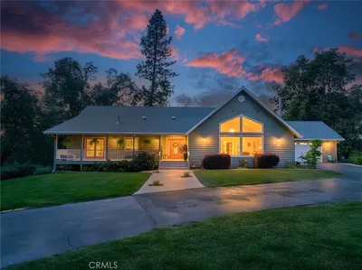 Welcome to your own private retreat with this large 4-bedroom, 2.5-bath home offering 2,356 sq ft of comfortable living on 40 private acres. The kitchen opens to a spacious living room with high ceilings, creating an open and inviting layout, anchored by a wood stove set on a beautiful river rock hearth. The primary suite offers a jetted soaking tub, dual sinks, a large walk-in closet, and a sliding glass door leading to the covered back patio, approximately 240 sq ft, perfect for enjoying the peaceful surroundings. Around the home, approximately 2 acres are fenced with 6-foot fencing and include a garden, chicken coop, fruit trees, and mature landscaping, while the remaining acreage provides privacy with no homes or roads in sight. Additional improvements include a 900 sq ft shop, a 440 sq ft garage, and three carports, one previously used for a destination trailer with full hookups. Owned solar adds efficiency to this quiet, private property where you can enjoy abundant birdlife during the day and the calming sounds of frogs and crickets at night.