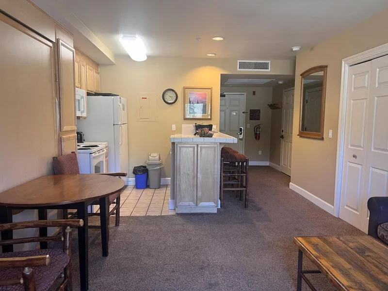 Take in stunning mountain views of Lifts 10 & 11 from your private deck at Kirkwood Ski Resort. Set up as two-connected units that sleep up to eight, this 1-bedroom ski-in/ski-out condo is a 1/8 fractional ownership. One side includes 2 queen beds, a cupboard kitchenette, full bath with tub/shower, closet, and deck. The adjoining unit offers a Murphy bed, sofa bed, full kitchen with dishwasher, full refrigerator, microwave and stove, fireplace, full shower/bath, and closet. With two entry doors and an interior connection, you can use one side and rent the other or close the door for privacy. Modern perks include streaming TV, high-speed internet, and digital entry. Ownership provides one week every other month, plus the option to rent other units for just a cleaning fee when available. Amenities feature a fitness center with dry/steam saunas, outdoor hot tub, and storage. You will also have private membership to the KCA recreation center with a new pool, hot tubs, fitness center, and restaurant/bar across the street. Reserved covered parking and a private owners storage cabinet are included. Additional benefits include global exchange through Interval International with access to 2,000+ resorts worldwide.