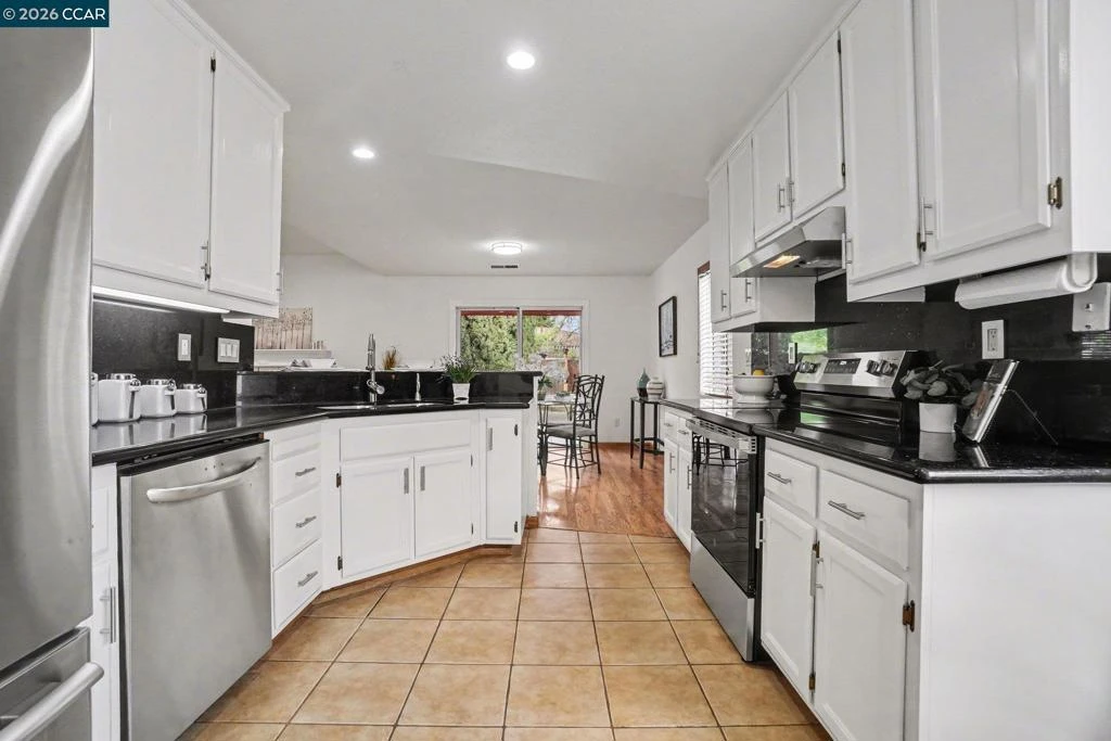 Move right in to this nice Parkside home! 3 bedrooms plus bonus room. Could be 4th bedroom, office, family room. Living room with wood burning fireplace, recessed lighting. Eat-in kitchen with breakfast bar, granite countertops, new range/oven, stainless appliances, freshly painted cabinets. Dining area with slider to rear yard. Primary suite with vaulted ceiling, two closets, bathroom with dual sinks, oversized tub. Freshly painted interior, new flooring upstairs, newer water heater. Low maintenance yards with auto drip system. Community pool and clubhouse. Zoned for award winning Morello Park Elementary. Conveniently located to shopping, parks, Highways 4 and 680 and vibrant downtown Martinez with shops, restaurants, marina.