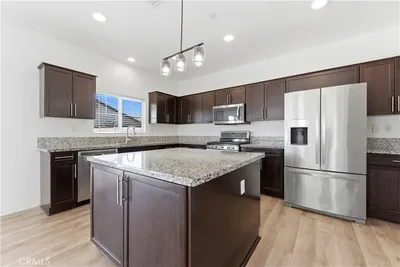 Welcome to 25347 Hitch Rail Lane, a beautifully upgraded home located in the highly sought-after Audie Murphy Ranch master-planned community of Menifee! This stunning two-story residence offers 5 spacious bedrooms, 3 bathrooms, and 2,347 sq. ft. of modern living space designed for comfort and style that includes Solar! Step inside to discover an open-concept floor plan featuring a gourmet kitchen with dark wood cabinetry, granite countertops, stainless steel appliances, upgraded stove, and pantry. The spacious great room flows seamlessly into the dining area, creating an ideal space for entertaining and family gatherings. Upstairs, you’ll find a convenient laundry room and a luxurious primary suite with a walk-in closet, dual-vanity bathroom, relaxing soaking tub, and separate shower. The home also includes fire sprinklers, built-in alarm system, recessed lighting, and 9-foot ceilings for added comfort and sophistication. Enjoy the outdoors in your pool-sized backyard—professionally landscaped and ready for your future oasis. The Audie Murphy Ranch community offers resort-style amenities including clubhouses, pools, sports parks, basketball and tennis courts, skate park, playgrounds, and miles of scenic walking and biking trails. Close proximity to top-rated schools, shopping, and the 15 & 215 freeways, this home perfectly combines modern living, community convenience, and Southern California charm. Don’t miss your chance to own in one of Menifee’s most desirable neighborhoods!