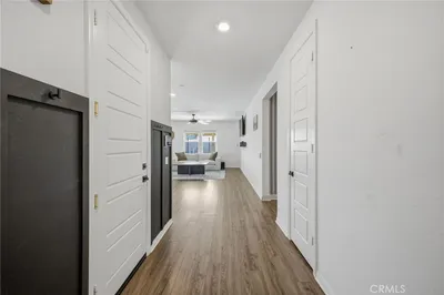 Better than brand new—practically just built! Welcome to 26459 Wreath Court, a beautifully turnkey home in the heart of Menifee, one of Southern California’s fastest-growing cities. Situated on not only a cul-de-sac, but on a premium corner lot with minimal neighboring properties, this home offers enhanced privacy, additional outdoor space, and a more open, airy feel— rare and highly desirable features! Featuring 3 bedrooms, 2 bathrooms, plus a versatile den/bonus room that can EASILY be converted and serve as a fourth bedroom, home office, or flex space—perfect for growing households. Step inside to an open-concept layout filled with natural light, soaring ceilings, and warm-toned vinyl flooring complemented by neutral designer touches and finishes throughout. An extra-wide hallway welcomes you in, setting the tone for the home’s spacious and inviting design. The chef’s kitchen is the heart of the home, showcasing quartz countertops, a farmhouse sink, stainless steel appliances, abundant cabinetry, ample pantry space, and a massive center island with bar seating. It flows seamlessly into the dining and living areas, creating an ideal space for both everyday living and entertaining. Additional highlights include a dedicated indoor laundry room, Wi-Fi smart thermostat, energy star home and a 2-car garage that you MUST SEE, offering excellent storage and functionality. Step outside to your private, newly landscaped backyard retreat, thoughtfully designed for both relaxation and entertaining. Enjoy BRAND NEW low-maintenance turf, clean walkways, floating concrete pavers and planter beds ready for a garden or fruit trees. The standout feature is a massive covered patio structure with recessed, lighting and not one but THREE smart ceiling fans with WiFi/Bluetooth enabled capability, perfect for year-round enjoyment. A designer/modern gated side yard/dog run and vinyl fencing add both versatility and privacy. Ideally located near parks, schools, shopping, and major commuter routes, this home is just minutes from the Menifee Town Center, Temecula Wine Country, and conveniently positioned between the 15 and 215 freeways. Move-in ready and designed for modern living—this is a home you don’t want to miss!