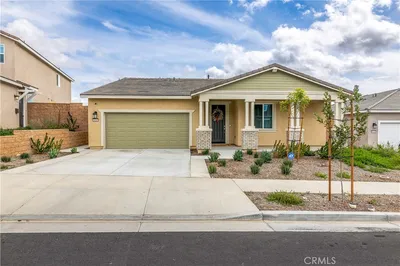 Tucked away in Menifee's "Silver Trail", a rare and intimate enclave of just 30 homes set against the foothills, this single-level residence sits at the end of a quiet cul-de-sac and delivers the perfect blend of privacy, space, and functionality. With over 2,000 square feet, 3-bedrooms & 3-bathrooms, this thoughtfully designed home offers $77,000 in upgrades and features gated RV parking with hookups—a standout bonus in a community known for its oversized lots. Inside, tasteful upgrades elevate the open-concept floor plan, including granite countertops, shiplap accent walls, pendant lighting, and custom window coverings throughout. The kitchen is the heart of the home, showcasing a large island with bar seating, high-end appliances, a pantry, and seamless flow into the dining and family rooms—ideal for everyday living and entertaining alike, with easy access to the backyard patio. The spacious primary suite offers private patio access and a well-appointed bathroom with dual sinks, a separate soaking tub and shower, and a generous walk-in closet. Secondary bedrooms are thoughtfully positioned away from the primary suite for added privacy. Outside, enjoy beautifully landscaped grounds with a covered patio and multiple seating areas designed for relaxation and gatherings. Adding even more value, the property offers room for an ADU with multiple plans already pre-approved by the City of Menifee—a rare opportunity in an already exceptional setting. Come take a look, we think you'll agree... this is home!