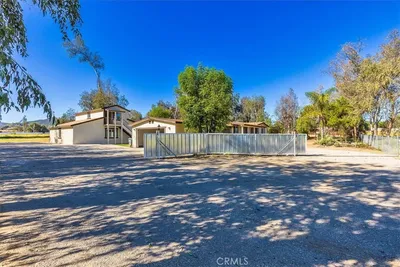 Welcome to your ideal rural retreat! Situated on just over an acre of flat, fully usable land, this charming 3-bedroom, 2-bath home offers the perfect blend of space, functionality, and country living. Located in a desirable equestrian community, the property features a detached Dutch-style barn—ideal for horses, hobbies, or additional storage. Enjoy wide-open space with endless possibilities for outdoor living, recreation, or expansion. The level lot makes it easy to accommodate animals, trailers, or future improvements. Conveniently located just one mile from the 215 freeway, you’ll appreciate the balance of peaceful surroundings with quick access to nearby amenities and commuting routes. Whether you’re looking for a horse property, room to grow, or a quiet place to call home, this property checks all the boxes!