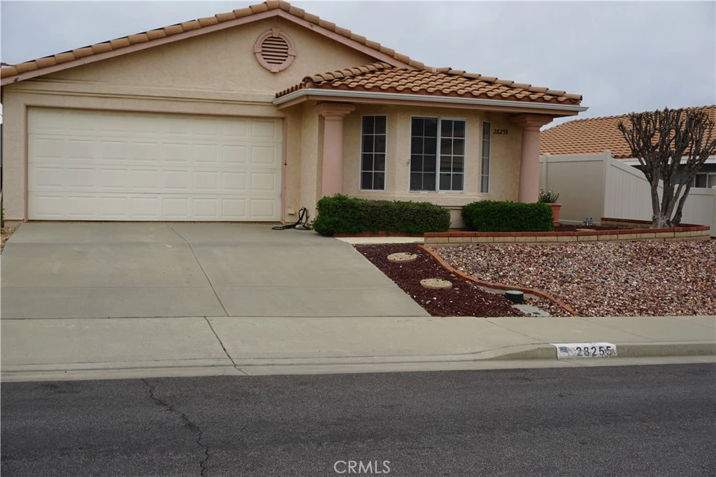 Home is located in the 55+ community of Casa Blanca Villas HOA in Menifee. It has 2 Bedrooms and 2 Bathrooms within 1,065 sq ft. The rear yard has a large patio with patio cover and a fruit tree. Laundry area is located in the 2 car garage which has access to side yard and direct access into home. Master Bedroom and bathroom are at rear of home with a nice size guest bedroom at the front. Home has leased Solar which includes an inverter and 2 Back up Batteries for storing power. The Casablanca Villas HOA has a nice clubhouse with many amenities and activities plus a pool, spa and tennis courts.