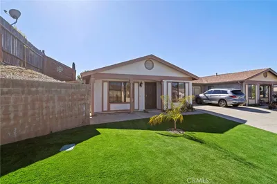**Welcome to 28275 Los Cielos Road in the heart of beautiful Menifee, California! This home is due East facing with plenty of natural light and the best of Feng Shui. 2 Spacious Bedrooms with a private master (primary) bedroom with a large walk-in closet. New refrigerator and stove to highlight a freshly painted kitchen and painted kitchen cabinets. Tile and Vinyl Flooring throughout to make the home easy to clean. Rear of the home has a large covered patio and a rear family room for additional space that could be a 3rd bedroom. Plenty of parking with a spacious 275 square foot 1 car garage, carport and open street parking. Pet-Friendly home with space to plant your favorite flowers and garden. Front landscaping is drought tolerant with newly installed artificial turf and palm tree. Must see this home to appreciate. This home is a perfect starter home, add to your rental portfolio, or a great retirement home. This home is close to the 215 freeway, shopping, restaurants, schools, worship, and shopping.