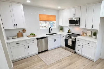 Best-Priced Fully Renovated Home in the Community. Welcome to this beautifully reimagined 2-bedroom, 1-bath home, offering the perfect blend of modern style, comfort, and value. Renovated from the studs up, this home delivers the rare appeal of a truly move-in-ready property with a fresh, never-lived-in feel. Inside, the open-concept floor plan creates a bright and inviting atmosphere. The all-new kitchen is a standout, featuring white shaker-style cabinetry, a pantry, quartz countertops, a designer backsplash, brand-new stainless steel appliances, and a professional-style slide-in electric stove. A gas valve hookup is also available in the kitchen for added flexibility. The living area is warm and welcoming, highlighted by a modern tiled fireplace and a light-filled bonus room that offers added space for relaxing, entertaining, or a home office. The bathroom has been completely remodeled with a stunning walk-in tiled shower designed for both beauty and convenience. Additional upgrades include new dual-pane windows, new doors, premium flooring, designer lighting, updated electrical and plumbing fixtures, fresh texture, fresh paint, and numerous other improvements throughout. Step outside to a low-maintenance backyard with a covered patio, ideal for morning coffee or enjoying cool evenings with friends and family. Enjoy Sun City Civic 55+ living for only $35 per month, with amenities that include two swimming pools, a spa, fitness center, billiards, table tennis, lawn bowling, shuffleboard, and horseshoe courts. Conveniently located near the 215 Freeway, shopping, dining, and medical facilities, this home also features an attached garage for added ease and practicality. Schedule your private showing today. HOA Video: https://www.suncitycivic.com