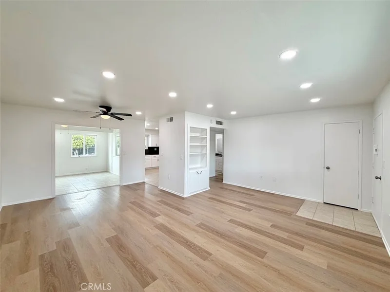 Fully renovated turnkey home in one of southern California's largest active adult communities. This open floor plan home has been upgraded from top to bottom: freshly painted interior and exterior, new energy-efficient windows for the entire home, luxury vinyl plank and tile flooring, new kitchen and vanity cabinets with quartz countertops and backsplashes, all new stainless steel appliances, as well as recessed lighting in the kitchen, living areas and bathroom. The home also features an indoor laundry room as well as an oversized single-car garage. 55+ Community.