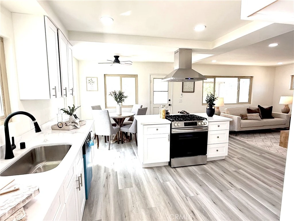 Don't miss out on this unique beautifully fully renovated 55+ single-family home that boasts 3 spacious Bedrooms, 2 full bathrooms with new roof, AC and furnace. Upon entry you will be greeted with a beautifully modernized updated very open floorplan that offers new laminate/wood flooring, new paint and baseboards throughout the entire house along filled with natural lighting thanks to well-placed double pane windows that provide warm and welcoming atmosphere. The well-appointed kitchen opens up to both very spacious living room and dining area creating an ideal space for both relaxation and entertaining. Kitchen also offers all new modern stainless steel energy efficient appliances with new Quartz counter tops and brand-new cabinets that offers plenty of cabinet/pantry space. Enjoy outdoor living in the backyard patio area and take in the serene surroundings! This 55+ community offers many amenities and activities, including a clubhouse, fitness center and community events...also, very low taxes! This home is conveniently located near shopping, dining and medical facilities, and provides easy access to everything Menifee has to offer!