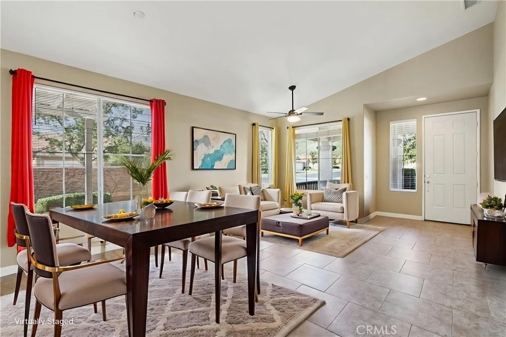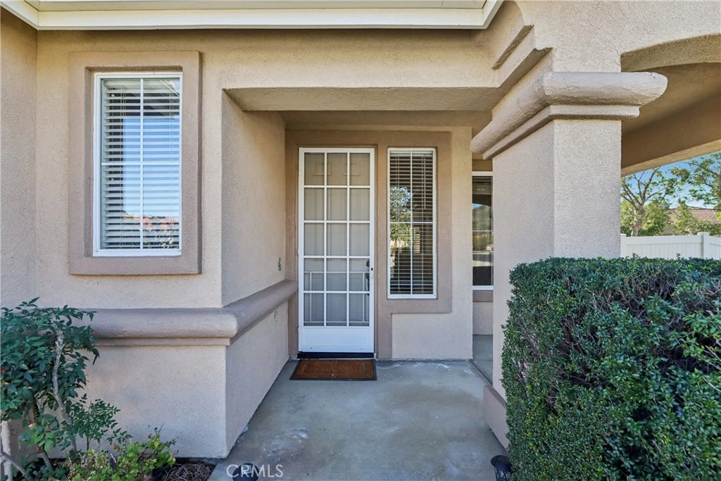 Welcome to The Oasis, a premier gated 55+ community offering resort-style living at its finest. This beautifully maintained 1,780-square-foot home on a corner lot, features 3 full bedrooms and 2 bathrooms with a bright, open floor plan designed for comfort and entertaining. Enter into the formal living and dining rooms which provide an elegant space for gatherings. The spacious great room showcases a cozy fireplace with raised hearth and flows seamlessly into the kitchen and dining areas. Cathedral ceilings in the primary bedroom create a light and airy retreat. A sliding glass door from the primary suite opens directly to the patio, blending indoor and outdoor living. The third bedroom is thoughtfully designed with a full wall of custom wood built-ins and a walk-in closet. Laundry room features a charming barn door. Newer ceiling fans throughout the home. Step outside to a generous private patio featuring Alumawood patio covers, ceiling fans, and privacy sun shades, perfect for relaxing year-round. The fully landscaped backyard includes custom stamped concrete, creating a serene and low-maintenance outdoor oasis. The garage includes custom cabinets and epoxy floors. Additional highlights include a fully paid solar system and HOA-maintained front yard landscaping for easy living. Residents of The Oasis enjoy exceptional amenities, including a pool and spa, clubhouse, fitness center, pickleball and paddle tennis courts, bocce ball court, billiard room, library, card and game rooms, and outdoor cooking areas. With guard gated security, you can enjoy peace of mind while embracing an active and vibrant lifestyle. This home is truly a gem, perfectly situated in one of the most sought-after senior communities. Don’t miss the chance to make it yours!