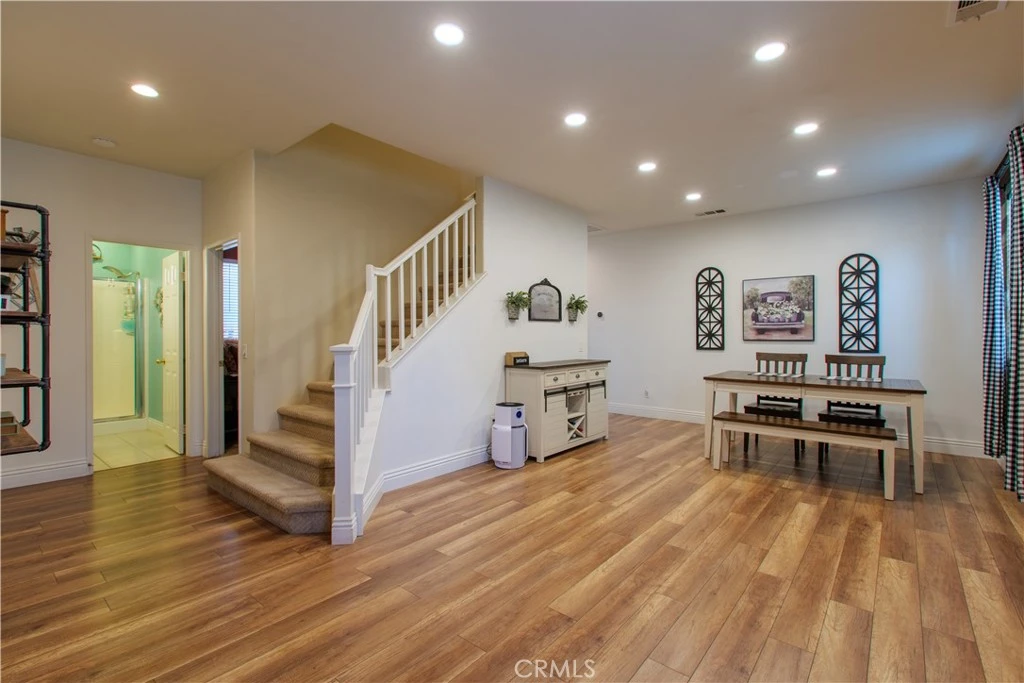 Welcome to this beautiful, turn-key, move-in-ready home with LOW TAXES, NO HOA, and ENERGY EFFICIENCY in a great neighborhood. This home shows true pride of ownership with upgrades throughout. The inviting entry showcases a custom shiplap accent wall, and the floor plan offers a full bedroom and full bathroom downstairs, ideal for guests, an office, or flexible space. The gourmet kitchen features a beautiful 6 ft island with pendant lighting, quartz countertops, a backsplash, and stainless steel appliances, all seamlessly opening up to a spacious family room with an upgraded fireplace. A new sliding door leads to a low-maintenance backyard with no rear neighbors, featuring an alumawood covered patio with 3 ceiling fans, bistro lighting, and a TV mount, perfect for everyday enjoyment. Additional features include a whole-house water-softening system, 17 solar panels for energy efficiency, a newer A/C system, a Nest thermostat, garage storage shelving, Govee lights, upgraded carpet, and a convenient upstairs laundry room. Conveniently located near freeway access, Menifee Town Center, shopping, dining, parks, walking trails, golf, and nearby hiking. This is the lifestyle you’ve been waiting for: affordable, low-maintenance, and ready for you to move in.
