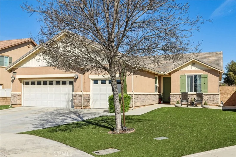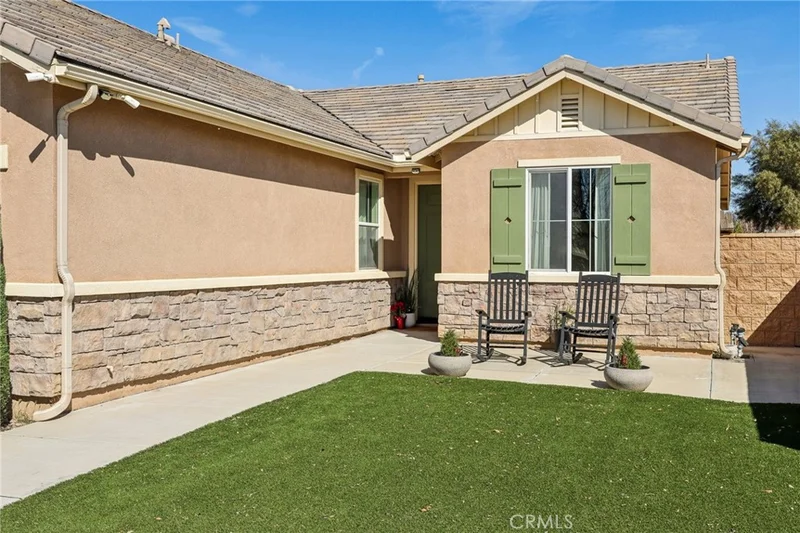 Welcome to Menifee Hills—where space, upgrades, and flexibility come together in one beautifully designed cul-de-sac home. Situated at the end of a quiet cul-de-sac, this beautifully upgraded 3 bedroom, 3 bathroom + office home offers approximately 2,030 sqft of living space with a highly desirable, open-concept floor plan that lives larger than expected. Enjoy added privacy, reduced traffic, and a safer space for kids and pets to play. Need more bedrooms? The dedicated office can easily function as a 4th bedroom, and the spacious primary retreat offers potential for a 5th bedroom conversion—ideal for multigenerational living, remote work, or growing families. The gourmet island kitchen is the heart of the home, featuring stainless steel appliances, beautiful cabinetry, a breakfast bar for casual dining, and a generous walk-in pantry. It opens to a giant living room —creating the perfect space for entertaining or relaxing at the end of the day. The private primary suite offers a large walk-in closet, dual sinks, an oversized soaking tub, and a separate walk-in shower. Additional highlights include laminate wood flooring, granite counters, raised panel doors, recessed lighting, custom window coverings, and an indoor laundry room. Step outside to a spacious backyard with zero maintenance artificial turf, room to run and play, and plenty of space to design your dream pool or outdoor kitchen. The oversized 3-car garage comfortably accommodates any size vehicle with extra storage space. Located near community parks, walking trails, shopping, schools, Menifee Lakes Country Club, golf course, and convenient freeway access—this home combines comfort, flexibility, and location. End-of-cul-de-sac privacy. Flexible living space. Thoughtful upgrades. Prime Menifee location.