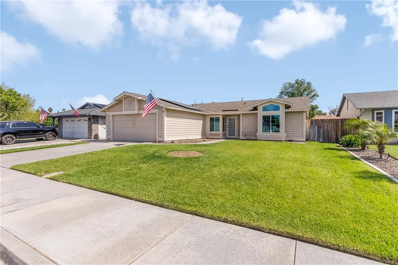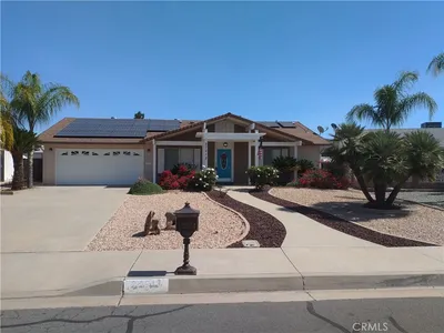 Charming single-story home tucked away on a quiet cul-de-sac in a desirable Menifee neighborhood, offering comfort, character, and a backyard designed for Southern California living. This 3-bedroom, 2 full bathroom residence offers 1,165 sq ft of living space on a generous 6,970 sq ft lot, featuring a functional layout, abundant natural light, and vaulted ceilings that create an open and airy feel throughout the main living areas. Inside, you'll find a spacious living room with a cozy fireplace, well-sized bedrooms, and a comfortable kitchen with ample cabinetry and storage, providing a practical space for everyday cooking and meal prep. The home includes two full bathrooms, offering added convenience for both residents and guests, along with updated light fixtures that add a fresh touch to the interior. Step outside to a backyard designed for both relaxation and entertaining, complete with an above-ground pool, spa, built-in seating area, fire pit, stunning pavers, plenty of grass, and charming hanging lights that create a warm and inviting atmosphere in the evenings, perfect for enjoying beautiful Southern California nights. Additional highlights include an updated AC system, a newer roof, and leased solar to help keep energy costs down while improving efficiency. Conveniently located near shopping, dining, parks, and major commuter routes, this home offers comfort, convenience, and great potential in a sought-after Menifee location.