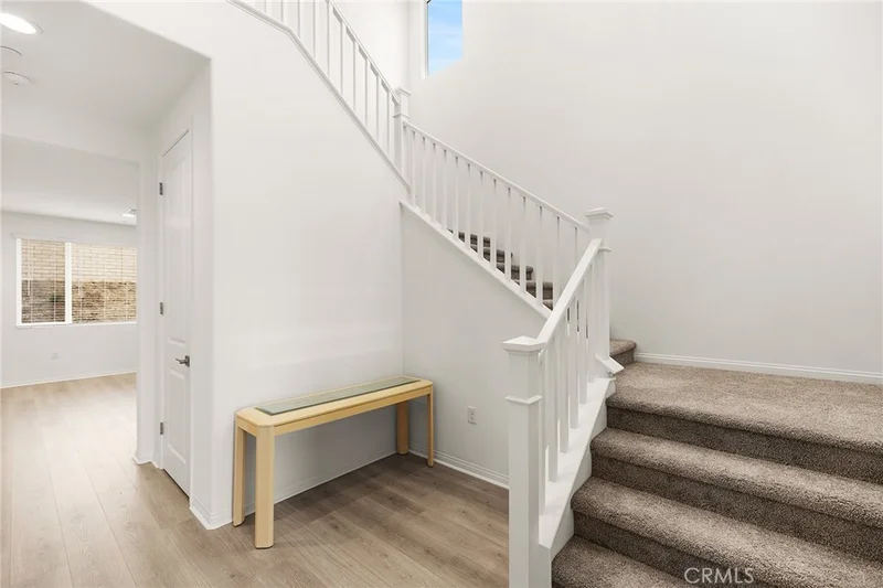 Welcome to 32265 Neal Lane – Modern Living in the Heart of Menifee! Discover the perfect blend of style, space, and convenience in this beautifully designed Presley Plan, a newly built home located in the desirable Braverde community. Set on a large lot with no rear neighbors, this home offers privacy, comfort, and thoughtful upgrades throughout. The heart of the home is the stunning gourmet kitchen, featuring white cabinetry, elegant Miami Vena quartz countertops, a huge kitchen island, stainless steel GE appliances and a walk-in pantry—ideal for entertaining and everyday living. Enjoy seamless flow with upgraded wood laminate flooring throughout, tile floors in bathrooms and laundry, and tall 8-foot doors that enhance the spacious feel of every room. The first level features a convenient bedroom and full bath, perfect for guests or multi-generational living, along with a spacious 2-car garage plus additional storage. Upstairs, you’ll find a versatile loft wired with outlets and ceiling fan, two extra storage closets, three additional bedrooms all with walk in closets, large laundry room, and a luxurious owner’s suite complete with a deluxe bath, separate soaking tub and shower, and an expansive walk-in closet. Additional highlights include solar panels for energy efficiency and lower utility bills, and a location that’s close to top-rated schools, making daily life even more convenient.
