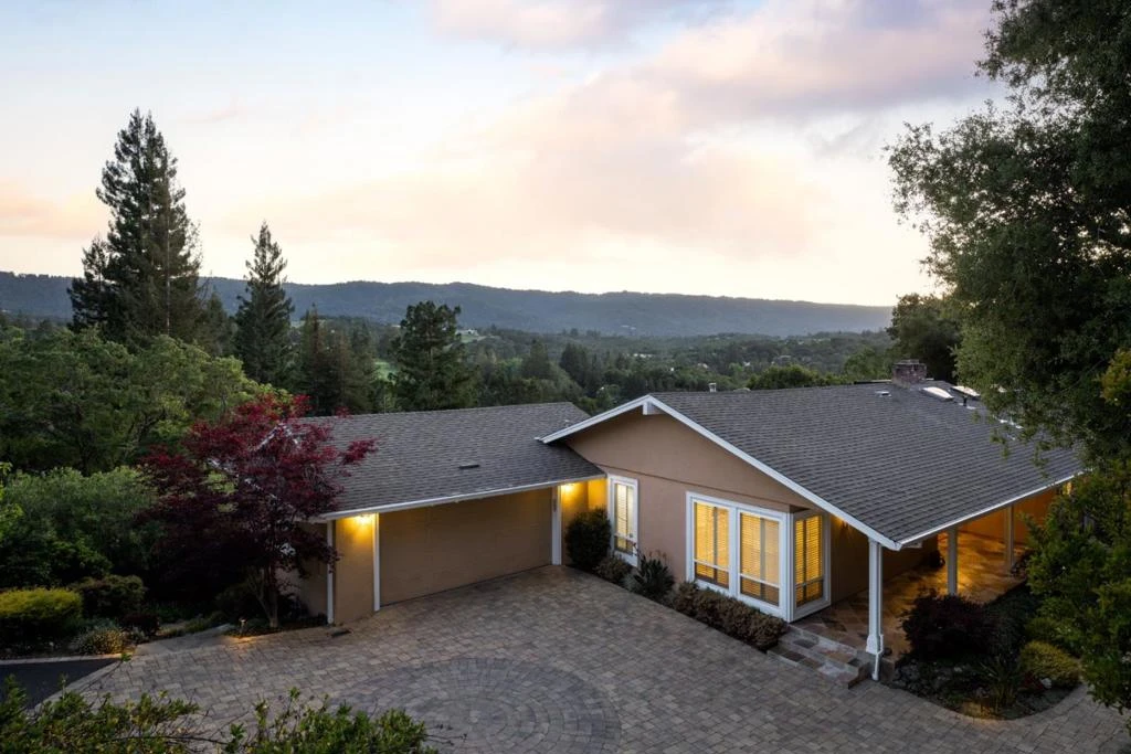 From the moment of entry, remarkable views unfold from this home, looking out to the verdant fairways of Sharon Heights Golf and Country Club, the Horse Park at Woodside, and the western hills beyond. The main living areas are perfectly positioned on the entrance level of this two-level home, opening to vast redwood decks that allow full advantage of the views from both inside and out. The homes transitional style is beautiful with a fresh neutral palette, refinished hardwood floors, and amenities perfect for entertaining on a grand scale. There is a spacious recreation room with a full wet bar, a 1,300-bottle wine cellar, and a kitchen with two sinks and commercial-quality appliances designed for a true chef at heart. There are 5 spacious bedrooms, including the main level primary suite, and a lower-level suite that doubles as the ideal remote work space with its own private entrance. Behind the scenes, solar power provides energy for the entire home, plus there is amazing storage throughout. Set on nearly one-half acre, the grounds are beautifully landscaped with lovely walk-out gardens and patios, flowering gardens, and retractable awnings on the decks for added shade. Landscape and tree lighting create a magical ambiance at night. Access to acclaimed Las Lomitas schools.
