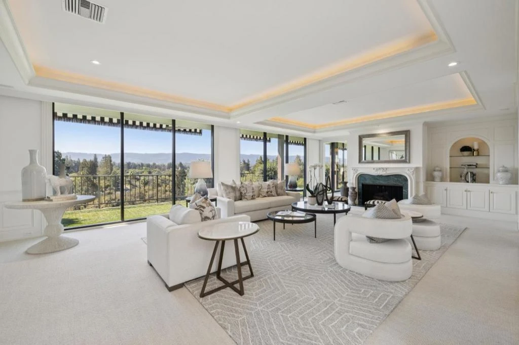 Positioned at the pinnacle of Menlo Towers in downtown Menlo Park, this rare penthouse is one of only two in the building, with neither trading in over 30 years. Offering approximately 4,880 square feet of single-level living plus more than 4,000 square feet of private exterior terraces, it delivers exceptional scale & privacy. Natural light fills the home through skylights & expansive windows, framing panoramic treetop & western hill views. A formal foyer opens to a grand living room with fireplace, elevated ceilings & sweeping outlooks. The dining room & main living spaces connect seamlessly to the terraces, creating effortless indoor-outdoor flow. The kitchen features a center island, casual dining area & walk-in pantry with wine refrigeration, while a separate media room adds flexibility. The private bedroom wing includes a spacious primary suite with remarkable views, a large bath & custom closets. Two additional en suite bedrooms, a den & office provide comfortable accommodations. Wraparound terraces define the residence, with turf lawn, putting green & multiple seating areas above the tree line. Menlo Towers is a secure environment with a staffed lobby, gym & pool. In the heart of downtown shops & restaurants, this is an exceptional residence of rare scale & distinction.