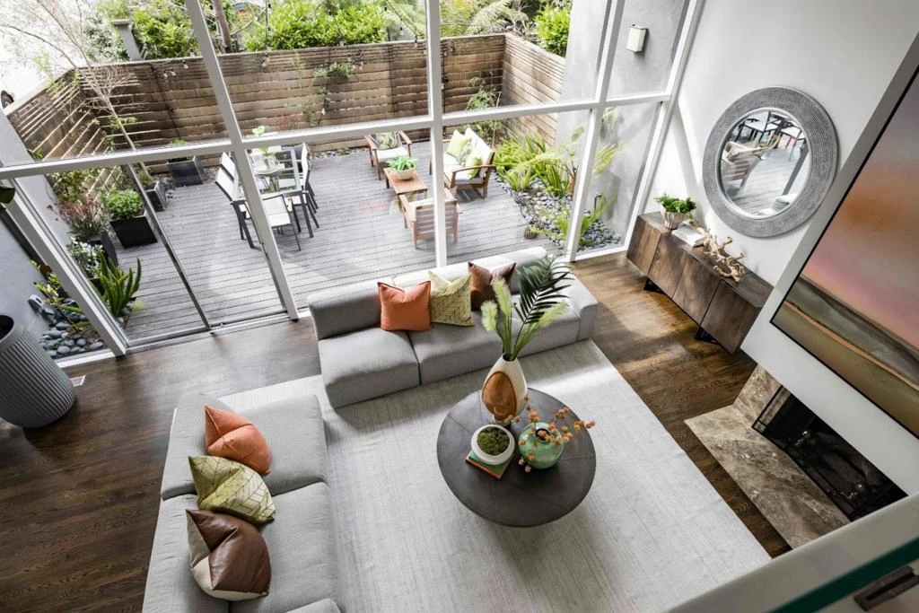Tucked within the Park Forest enclave along the Atherton border, this modern attached single-family home occupies an end-unit location and spans nearly 2,400 SF. Sunlight pours through floor-to-ceiling windows, illuminating rich hardwood floors and high ceilings. The spacious living room with a fireplace offers a welcoming retreat, while the marble-appointed kitchen with Thermador and Bosch appliances, dining area, and adjacent family room create effortless spaces for gathering and entertaining. Two bedroom suites feature a primary with an attached office, while additional amenities include AC, a laundry room, and two-car garage. Outside, a private patio garden provides a serene escape, and residents enjoy a sparkling community pool. Just a short stroll to Holbrook-Palmer Park and minutes from downtown Menlo Park, with easy access to Palo Alto, the home is served by top schools Encinal Elementary, Hillview Middle, and Menlo-Atherton High (buyer to verify eligibility).
