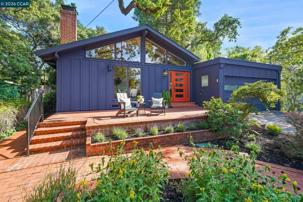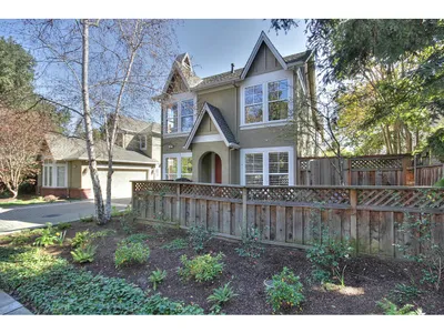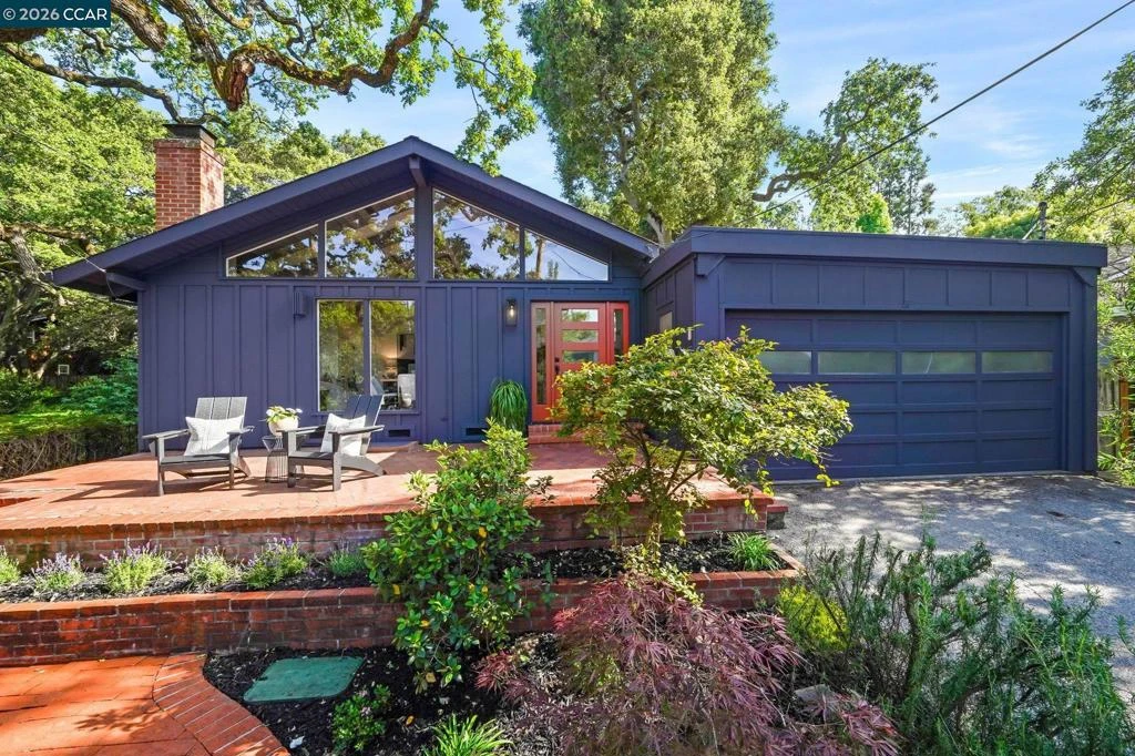Tucked among a canopy of mature heritage oak trees, this striking 3 bedroom, 2 bathroom contemporary home offers a rare blend of architectural character, natural beauty, and modern comfort in the highly sought after Stanford Weekend Acres neighborhood. Spanning approximately 1,320 square feet on a 5,368 square foot lot, this home delivers both charm and functionality. Inside, soaring pitched ceilings with exposed beams create a dramatic yet inviting atmosphere, while expansive picture windows frame serene views of the surrounding oaks, bringing the outdoors in. The open, airy floor plan seamlessly connects the main entry, dining area, fireplace, and living room into one cohesive space, perfect for both everyday living and entertaining. The home is filled with natural light and features beautiful ocean-blue tile throughout the great-room, adding a refined and cohesive aesthetic. The kitchen is equipped with stainless steel appliances and blends effortlessly into the main living space. The thoughtfully designed layout includes a convenient interior laundry closet and comfortable living spaces that feel both sophisticated and effortlessly livable. Whether you are drawn to its current turnkey condition or inspired to make it your own, the home offers flexibility to suit your vision. Set on a beautifully landscaped lot, the exterior showcases the home’s unique architecture, with the oak trees naturally framing the property. Brick patios and walkways lead through newly refreshed front and backyard spaces, complete with new lawn, plantings, and a brand new automatic irrigation system, ideal for both relaxing and entertaining. Additional features include a detached, finished two car garage and a setting that feels private and tranquil, yet is just moments from shopping, freeway access, Stanford University, and major tech campuses.