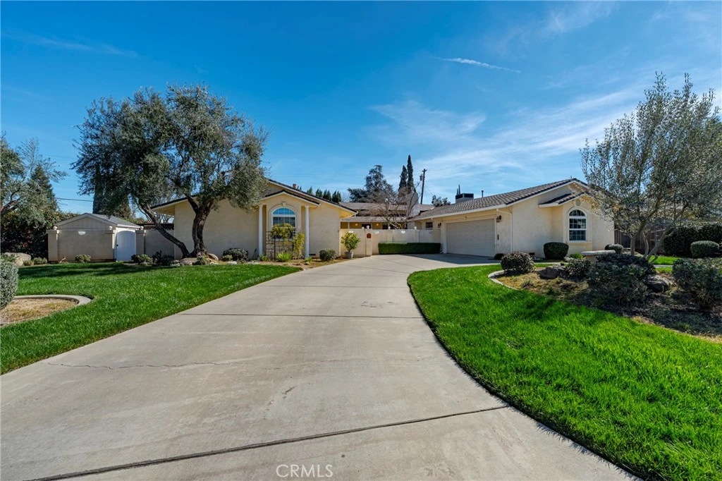 Welcome to this exquisite 4-bedroom, 3-bathroom home in the coveted Harris Acres neighborhood. Spanning 2,773 square feet on a generous 12,397 square foot corner lot, this property offers unparalleled elegance and comfort. The front yard greets you with a circular driveway and a charming courtyard, setting the stage for the luxurious interior. Step inside to an entryway flooded with natural light, boasting tall ceilings and beautiful bamboo floors. The gourmet kitchen is a chef's dream, featuring granite countertops, custom cabinetry, a Dacor electric cooktop, Jennair oven, a wine fridge, and a warming drawer. Enjoy the convenience of radiant heating in the flooring and on the island, all seamlessly connected to the family room. The primary bedroom is a true retreat, complete with built-ins, a gas fireplace, and an en-suite bathroom featuring double vanities, more radiant heating in the flooring and a walk-in closet. Additional interior highlights include three gas fireplaces, tankless water heaters, two HVAC units, owned solar, Hunter Douglas Silhouette blinds, a whole house fan, and brand new Milgard windows. The backyard is an entertainer's paradise with an in-ground swimming pool that includes solar heating and a removable fence, a deck with a pergola, and a mix of turf and grass. A storage shed provides extra convenience. Located near the Bear Creek path, this home offers access to scenic walks and outdoor activities.