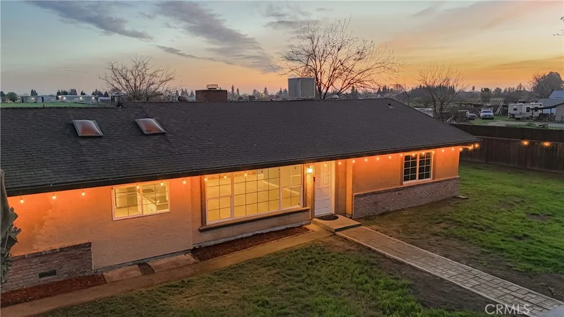 Don't miss the rare opportunity to own a spacious 4.4 acre country retreat in Merced Irrigation District. This home has been updated, loved and cared for with upgrades including newer oversized dual paned windows, extra bedroom, extra bathroom,& indoor laundry. Home shows as a 4 bedroom 2 bath home. Expanded modern kitchen with skylights, newer cabinets & spacious pantry help to make this the heart of the home. Newer paint, floors, granite counters, lighting & dual vanities revamp the main bathroom. The living area features a wood burning fireplace and a functional layout perfect for both entertaining and everyday living. Step outside to wide open land with endless potential for animals, gardening, homestead farm, or future expansion, complete with gated access and fully fenced property. Per seller, up to 4 homes can be built on the lot**