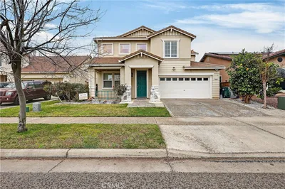 Welcome to 3954 Menton Ct! This turnkey North Merced home offers comfort, space, and convenience with easy access to CatTracks, Merced College, and UC Merced. Step inside to find a thoughtful layout featuring both a formal living room and a separate family room, each with ceiling fans for year-round comfort. The formal dining area and spacious kitchen make entertaining a breeze. The kitchen boasts granite countertops, a center island with sink, double ovens, a generous pantry, and room for a breakfast table. The primary suite is located on the main level with direct backyard access. The ensuite bathroom includes dual sinks, a large walk-in closet, a jetted soaking tub, and a separate shower stall. Upstairs, you’ll find three additional bedrooms with ceiling fans, a full bathroom with dual sinks, and cozy carpet flooring. Additional highlights include a downstairs laundry room with cabinetry, hardwood flooring throughout the main level, and beautifully landscaped front and backyards. The backyard is perfect for relaxing or hosting, featuring a stained floating deck under the covered patio with ceiling fan, and concrete hardscaping for low maintenance.