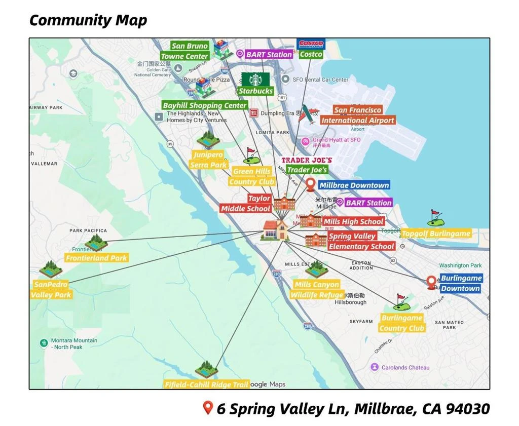 Rare opportunity in one of Millbraes most desirable neighborhoods with top-rated schools. This spacious property features a 6BD/4BA main residence plus a detached 1BD/1BA ADU, offering exceptional flexibility for multi-generational living, guests, or rental income potential. The home is thoughtfully configured to function as three separate living spaces: a primary upper level, a lower level with its own private entrance, and a detached ADU for added independence and versatility. Ideal for extended family, owner-occupants seeking supplemental income, or those in need of flexible living arrangements. Filled with natural light, the home offers generous living areas, comfortable bedroom suites, and a functional layout that balances privacy with everyday livability. Outdoor space provides room to relax, entertain, and enjoy the setting. Conveniently located near top schools, parks, shopping, dining, and major commuter routes, this unique property combines space, flexibility, and lifestyle convenience in the heart of Millbrae.