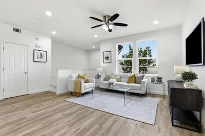 Find your new luxury home at South Main, an exclusive all-electric community of new townhomes in Milpitas. This corner unit home blends comfort and style across three thoughtfully designed levels. The entry leads to a spacious first-floor flex room. Second floor, open-concept main living area connects the great room, kitchen, and casual dining space. Kitchen features a center island, stainless steel appliances, walk-in pantry, while sliding doors open to a covered deck—ideal for outdoor dining or entertaining. Secondary bedroom with access to a full hall bath offers a welcoming space for guests or family. Upstairs, the private primary suite includes a generous walk-in closet and a spa-like bath with dual-sink vanity, a shower with seat, and a private water closet, covered deck extends the suite outdoors. Secondary bedroom with a private bath. Intimate enclave boasts a community park with tot lot, picnic areas. Its central location provides walkability to world-class shopping, dining, recreation such as Great Mall, Big Dog Vineyards, and Hidden Lake Park. Near the new Milpitas Transit Center featuring BART / VTA and convenient access to highways 680 / 880 / 237. Designer upgrades can still be selected. Customize this home today! ( photos not of actual home, for marketing only)