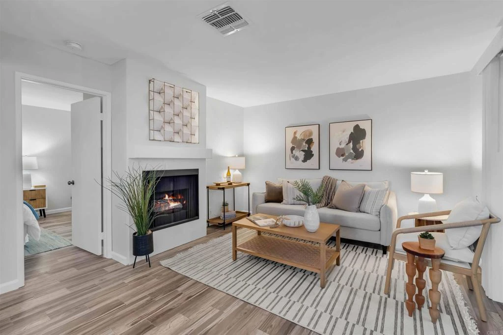 Welcome to a rare ground-floor condo in the desirable Summit Ridge community of Mira Mesa. This 1-bedroom, 1-bath residence is filled with natural light and offers a comfortable, stylish living experience. The kitchen features quartz countertops, crisp white cabinetry, and stainless steel appliances, opening effortlessly into the living area with a gas fireplace and tile flooring throughout. The bedroom offers a spacious layout while central A/C adds year-round comfort. Some highlights, the unit comes with 1 assigned parking space, ample guest parking, a private patio ideal for relaxing or entertaining and laundry hook-ups in the closet on the patio. Residents also enjoy access to resort-style amenities such as a pool, spa, fitness center, and a well maintained greenbelt surrounding the complex.