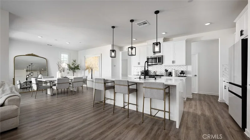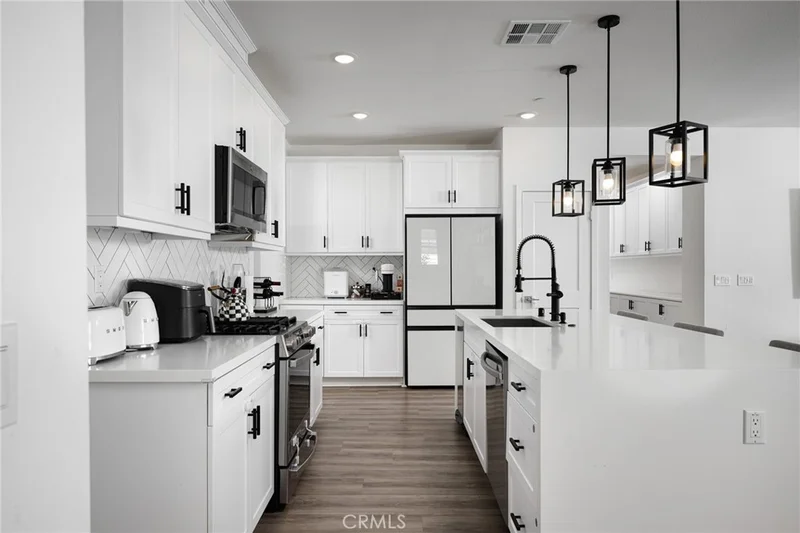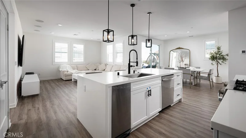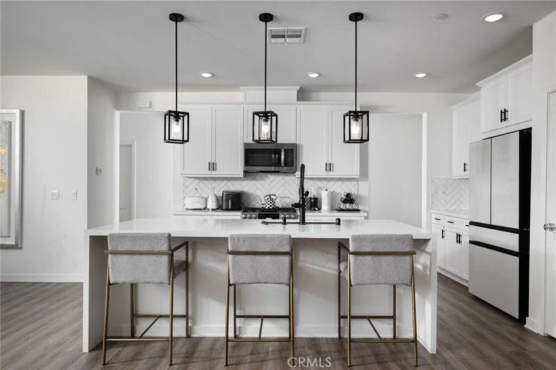 Welcome to your dream home in the highly sought-after Saddleback Place — with NO MELLO ROOS and PAID SOLAR! Built in 2023, this turnkey condo offers 3 bedrooms/2 bathrooms, 1,952 sq ft of upgraded living space, and a 2-car tandem garage — combining modern luxury with energy efficiency. From the moment you enter through the keyless entry, you’ll notice the thoughtful upgrades and designer finishes throughout this single story home located on the third level, with extra cabinetry in the entry walkway provides both style and functionality. The bright, open-concept great room is ideal for entertaining and everyday living. Built-in speakers with receiver and subwoofer create an immersive sound experience, while recessed lighting over the oversized island enhances the home’s warm, inviting ambiance. The chef’s kitchen is truly a showstopper, featuring: Dual waterfall countertops with matching surfaces throughout, Elegant backsplash, Quartz countertops & Shaker cabinetry, Upgraded oven/stove and microwave, Upgraded hardware and faucet, and spacious pantry. The living and dining areas open to a sunny private balcony — perfect for BBQs and relaxing evenings. Upstairs, all bedrooms are filled with natural light and include upgraded lighting in bedrooms and closets. The primary suite offers an extra-large double-sink vanity and a generous walk-in closet. The guest bath features sleek glass shower doors. Additional premium touches include plantation shutters in the front and blackout shades in the bedrooms for added comfort and privacy. More highlights include: Paid solar system, Tankless water heater, and Extra cabinetry for added storage. Enjoy resort-style amenities including a pool, spa, tot playground, walking paths, and BBQ areas. Located close to top-rated schools, parks, restaurants, shopping, and the year-round events at Lake Mission Viejo. This is the turnkey, energy-efficient, upgraded home buyers are searching for — and it won’t last long. Make it yours today!