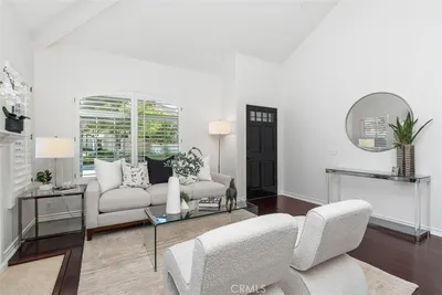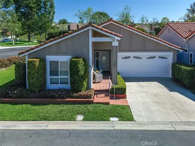 Welcome to this beautifully upgraded home in the highly sought-after, guard-gated 55+ community of Palmia. This light-filled residence offers 2 bedrooms, 2 bathrooms, and an inviting open layout with vaulted ceilings and a cozy fireplace. The upgraded kitchen features custom cabinetry, quartz countertops, stainless steel appliances, a designer backsplash, and a breakfast nook with direct access to the backyard. The primary suite is privately located at the rear of the home with backyard access. The spa-inspired bathroom includes dual vanities, a walk-in shower, separate water closet, and a custom closet with a stylish barn door. The secondary bedroom, currently used as an office, is positioned at the front of the home near an updated hall bathroom with designer finishes and a walk-in jetted tub. Enjoy a serene, beautifully maintained backyard with an Alumawood patio cover, pavers, and lush landscaping. The corner lot offers added privacy and convenient access to the clubhouse. Upgrades include a premium Lennox HVAC system (2024), hardwood flooring, plantation shutters, full home re-piping, tankless water heater, solar, and water softener. Palmia offers resort-style amenities including a clubhouse, pool, spa, fitness center, 18-hole putting green, pickleball, tennis, bocce, and more—plus access to Lake Mission Viejo with beaches, boating, and summer concerts.