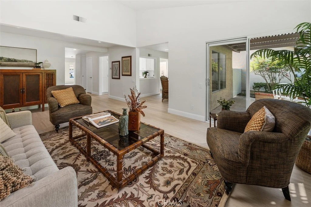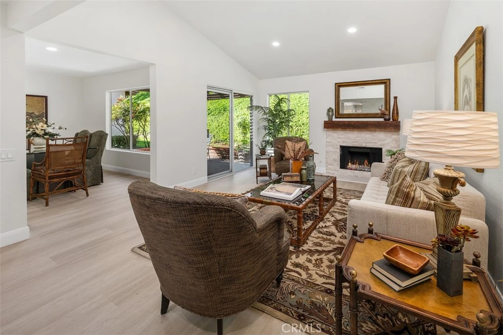 A beautiful Casta Del Sol home located in a 55+ guard gated senior community. It is a Narciso model on a very quiet, peaceful cul-de-sac lot with a sense of security creating a tranquil and private setting. The home has 3 bedrooms, 2 baths, with 1495 sq. ft. It is remodeled throughout with ALL NEW vinyl wood flooring, hardware, moldings, dimmable LED lights, granite quartz counter tops in the kitchen and both bathrooms, new mantel, stack-stone fireplace, freshly painted, and epoxy flooring in the garage. Also includes PEX re-piping, garage cabinets, a pull-down ladder for easy attic access, and LED lights in the garage. Casta del Sol offers many great amenities: swimming pools & spas, tennis, pickle ball, billiards, fitness center, wonderful library, club house, many clubs, parties and much more. You also have access to Lake Mission Viejo, with sandy beaches, boating, picnic areas and fabulous summer concerts.