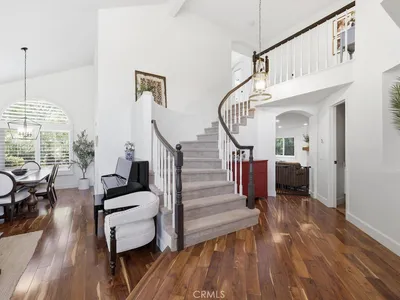 Beautifully Updated in South Mission Viejo! Located in the highly sought-after Auburn Ridge community, this home offers an exceptional combination of location, condition, and long-term value. Positioned on the view side of the street, the property enjoys treetop and city light views with a southwest-facing orientation for colorful sunset skies. This 4 bedroom, 2.5 bath home features a well-designed and functional floor plan, a 3 car garage, and a wide driveway with ample guest parking. A welcoming front porch entry adds to the home’s inviting curb appeal. Extensive updates provide value and peace of mind for true move-in ready living, including: newer windows and sliding glass door, newer AC, PEX repipe, engineered hardwood flooring, roof tune-up, newer garage doors and openers, updated carpeting, and recent interior and exterior paint. The kitchen has been beautifully remodeled with quartz countertops, white cabinetry with soft-close features, and updated appliances including a 5-burner gas range. Additional improvements include refreshed bathrooms, updated lighting, ceiling fans, plantation shutters, black out shades in primary suite, plumbing fixtures, and a garage pre-wired for your electric vehicle charger(s)! The backyard offers privacy with no homes directly behind in an elevated setting, with views of mature trees, city lights, and even 4th of July Fireworks. Designed for easy maintenance and everyday enjoyment, it features a pavered patio with grassy area—perfect for relaxing, entertaining, and just enjoying indoor-outdoor California living. Lake Mission Viejo membership is included, with access to beaches, boating, summer concerts, camps, and year-round community events. This South MV location is convenient to everything- including parks, shops, dining, hospital, and mall, all with a low tax rate and no mello roos. Approximately $175K in improvements. This home has it all…. Come fall in love- and make it your own!