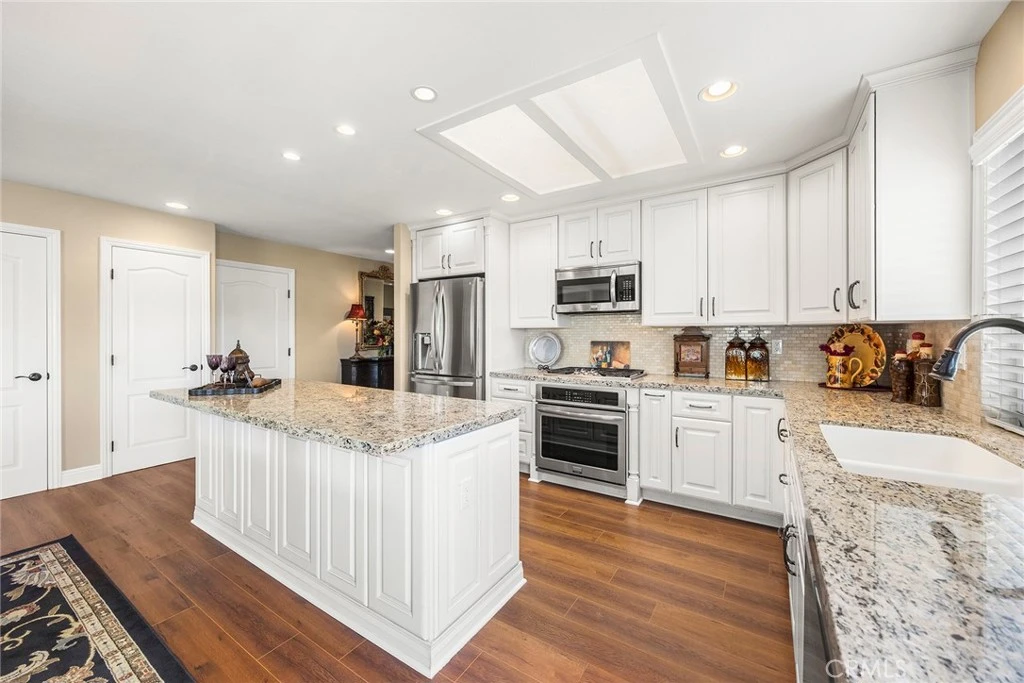 Here it is, the one you’ve been waiting for. This northeast-facing, single-story home is perfectly situated at the end of a quiet cul-de-sac, offering both privacy and a prime location.This upgraded and well-loved home is one of the most sought-after floor-plans in the 55+ community of Casta del Sol. With its open concept and ideal flow, you’ll love calling this home your own. The three-bedroom layout includes one room that is currently being used as an office, making the space as versatile as it is functional. Double-pane windows, low-maintenance, beautiful flooring and a seamless flow throughout create a warm and welcoming feel. Spacious kitchen featuring a large center island with granite countertops, abundant cabinetry, and generous prep space. The island offers additional storage and serves as the perfect gathering spot for entertaining. Stainless steel appliances, and beautiful flooring complement the light cabinetry, creating a bright and inviting heart of the home. It checks off all the boxes, recessed lighting, soft-close drawers, spice rack, and a walk-in pantry and a bright, cheerful window that captures the surrounding views and fills the space with natural light. The living room offers privacy, a cozy gas fireplace. It flows effortlessly into the dining room, perfect for hosting or everyday dining. The primary bedroom is generously sized and features an updated en-suite bath with dual vanities, granite countertops, a walk-in shower and a walk-in closet. The second bedroom tucked away and features a spacious mirrored closet with plenty of storage, and overlooks the side yard, bringing in natural light and a pleasant view. An additional full bathroom with a walk-in shower is ideal for guests. The home also offers multiple access points to the backyard, where you can enjoy your morning coffee or devotional in peace. The patio has a newer pergola providing shade over the outdoor seating area. Two separate patios to pick from is the perfect place to sit, exhale, and take in the surrounding views. The two-car garage includes direct access into the home. The HOA dues cover landscaping, trash pickup, front yard maintenance, making for easy, worry-free living. Adjacent to the Oso Creek Golf Course, featuring a beautiful patio, restaurant, and fun lounge. Residents also enjoy membership to Lake Mission Viejo, where you can enjoy two private beaches, picnic, sail, fish & more. This home and community truly have so much to offer and you will love it!!