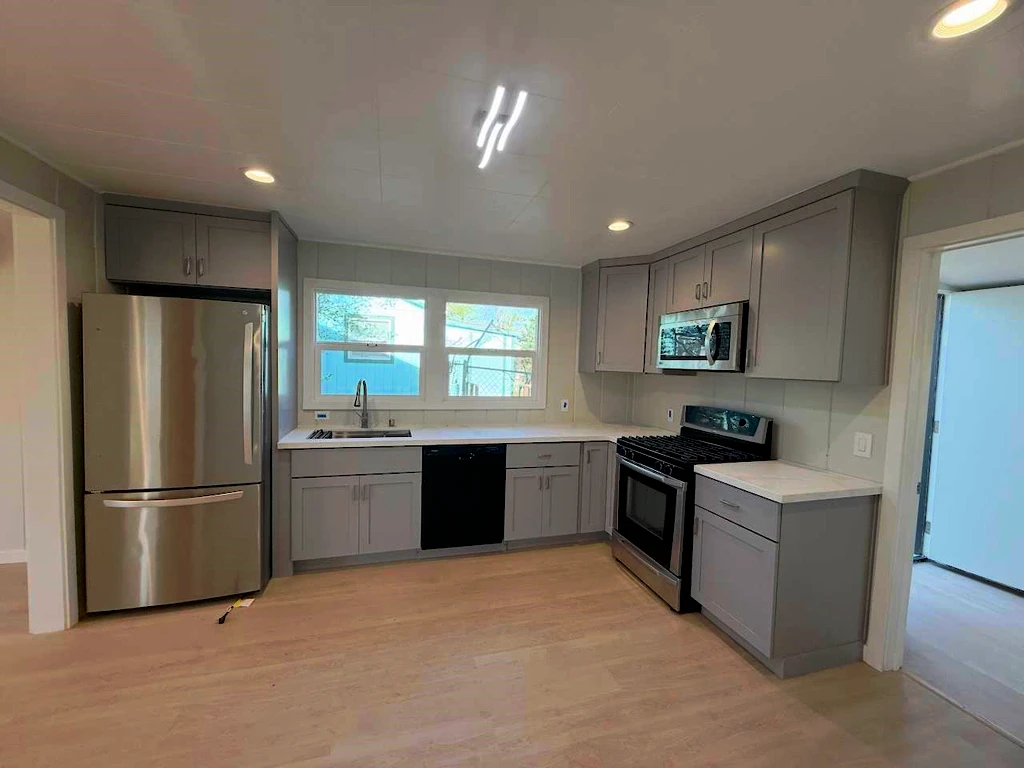 READY TO MOVE IN HOME. 2beds + bonus room, 1 bath. Completed remodeles and everything is new. Complete renovation with new appliances, pantries, windows & bathroom. New floor and new carpet in bedrooms. Each room features a mini split air conditioner for ultimate comfort New tankless water heater for efficiency and savings, turf in front of the house. Plenty space in the back yard and side yard. Type of loan could be conventional, FHA, VA, CASH.