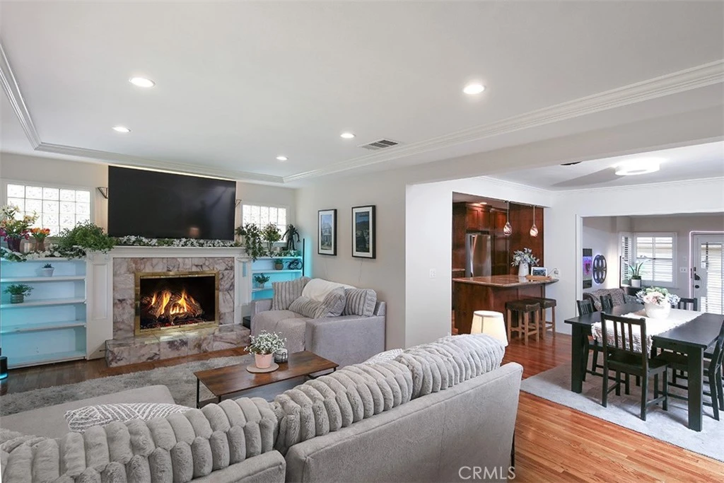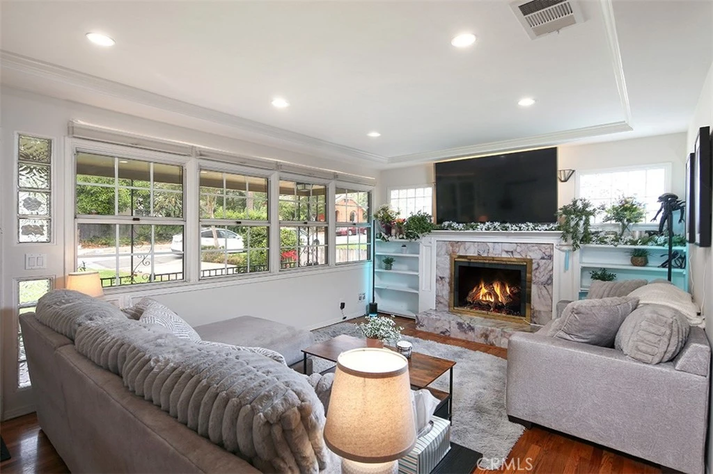 Located in the heart of North Monrovia's most beloved neighborhoods this upgraded single story home offers the best of the SoCal lifestyle! Move in ready with brand new HVAC, duct work, electrical panel and Earthquake retrofitting. A proper sitting porch invites you into your light filled living room with fireplace, pull down shades and hardwood floors that flow into the dining room. The kitchen offers quality custom easy close cabinets galore, stainless steel appliances, a breakfast counter and a heated floor. A step down flex room provides extra room for a media room, work /hobbies or play room and exits to the backyard. A serene and spacious primary bedroom offers peek a boo mountain views, walk in closet and an upgraded ensuite bathroom with elegant tile shower, dual sinks, granite counters and custom cabinetry. Bedrooms 2 & 3 enjoy a well appointed full bathroom with a jetted spa tub, separate shower and dual sinks. An oversized finished 2 car detached garage offers potential ADU conversion. The home is walking distance to Monrovia's Wilderness Preserve trailhead and the highly desired Mayflower grade school.