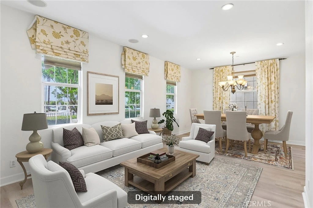 Move-in ready detached home in welcoming gated community in desirable Montclair development. ~~ FORMER MODEL HOME~~ 3 bedrooms / 3.5 bathrooms, 2134 SF built in 2007. This unit is on the outer perimeter and has nice views. Brick paver walkway leads to front entry with private yard. New interior paint, new vinyl plank flooring on the first floor. Living area, kitchen, custom baseboards, custom paneled doors, Lots of natural light and open floor plan with Dining area and Living Room. Open Kitchen with custom white cabinets, granite counters, stainless steel appliances, new dishwasher, recessed lights, and pantry. Downstairs guest bathroom with pedestal sink.. New carpet on stairs. This 3-story homes features white storage cabinets, all bedrooms upstairs, including 2 Secondary Bedrooms, that share the hall bathroom. The Primary Bedroom is large with new plush carpet, crown molding, big walk -in closet, Plantation shutters, glass door to 16 X 5 deck. The Primary bathroom includes dual sinks, white cabinets, large soaking tub, and custom tile floor. The third floor loft which could be used as an additional bedroom, office, or theater room, has a full bathroom. Attached 2-car, all finished garage. LOW HOA! HOA amenities include playground and BBQ area. Close to schools, shopping, and easy access to 10 FWY. Do not miss this opportunity.