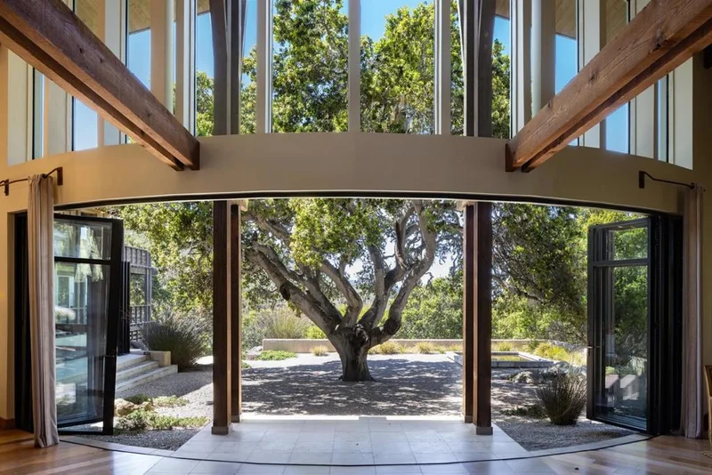 Commissioned and featured by Sunset Magazine as a true architectural marvel, The Sunset Magazine Idea House flawlessly blends its inspiration from Steinbeck Country's rustic roots with a luxurious modern style designed by Thomas Bateman Hood to perfectly frame the incredible ocean and mountain views. Located on ~1.75 acres within Monterra's prestigious gated community, the property is available for the first time since the original owners purchased it. It includes 3 main structures and integrates sustainable design principles and innovative features. Its open-plan layout utilizes an effortless indoor-outdoor flow, with expansive windows framing the surrounding views of mature oak trees, the Santa Lucia Mountains, and Monterey Bay to the west. Designed for comfort and eco-friendliness, the house incorporates recycled materials such as reclaimed barn wood from a local stagecoach station, energy-efficient systems, and drought-tolerant landscaping. The interior exudes a relaxed yet sophisticated vibe, showcasing contemporary furnishings and artistic touches. Outdoor spaces include a spacious deck, fire pit, pizza oven, built-in BBQ, bocce ball court, producing olive grove, and multiple seating areas nestled between the native plant gardens, encouraging outdoor living.