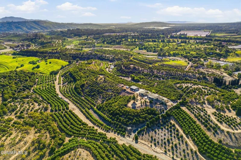 Set on 20.5 acres of producing avocado and lemon groves, this exceptional ranch offers privacy, strong confirmed Orchard income with good potential ADU income, and breathtaking 360-degree panoramic mountain and valley views. Garage space for up to 15 cars. The orchard is actively producing and generating hadsome, consistant annual income, making this a rare opportunity to own a working agricultural estate with strong investment appeal.The 2,160 sq. ft. single-story modular home features 3 bedrooms and 2 bathrooms, a fireplace, spacious living room and family room, dedicated laundry room, updated windows, and a beautifully renovated interior with waterproof vinyl plank flooring throughout. Expansive windows showcase stunning views from every room. The home, and all the other structues is protected by automatic backup generator for added reliability and peace of mind.Outdoor living is highlighted by two covered patios with sweeping views of the Santa Monica & Topa topa mountain and valley views, ideal for relaxing or entertaining. The expansive backyard is fully enclosed with an 8-foot green chain-link perimeter fence and offers abundant space for a custom pool, a another ADU option, or outdoor entertainment area.A long asphalt driveway lined with mature trees leads to a gated entry with lighted automatic gates, creating a grand and private arrival. The property features paved access roads and includes four single-story wood-framed structures built to code, offering versatility for residential, agricultural, or operational use.The land is supported by a 325 GPM AG water well installed in 2013 with The county water master 36.34 acre feet allocation. along with drought-tolerant landscaping on automatic sprinkler systems sourounding the home and other buildings..Additional improvements include a 5000 sq ft stoarge yeard with 8' high fence and privacy clothe and 20 foot wide entry gate , an 1,800 sq. ft. metal building with electrical service and roll-up doors built in 2017, a three-car garage, and a 500 sq. ft. carport for ample vehicle and equipment storage. A private 725 sq. ft. studio ( ADU ready) with full bath, closet, and kitchen provides excellent guest, and yet another oversized garage with huge gym space for staff, or rental potential.This unique property blends income-producing agriculture, multiple structures, resort-style outdoor living, and unmatched privacy--an extraordinary ranch estate with endless possibilities.