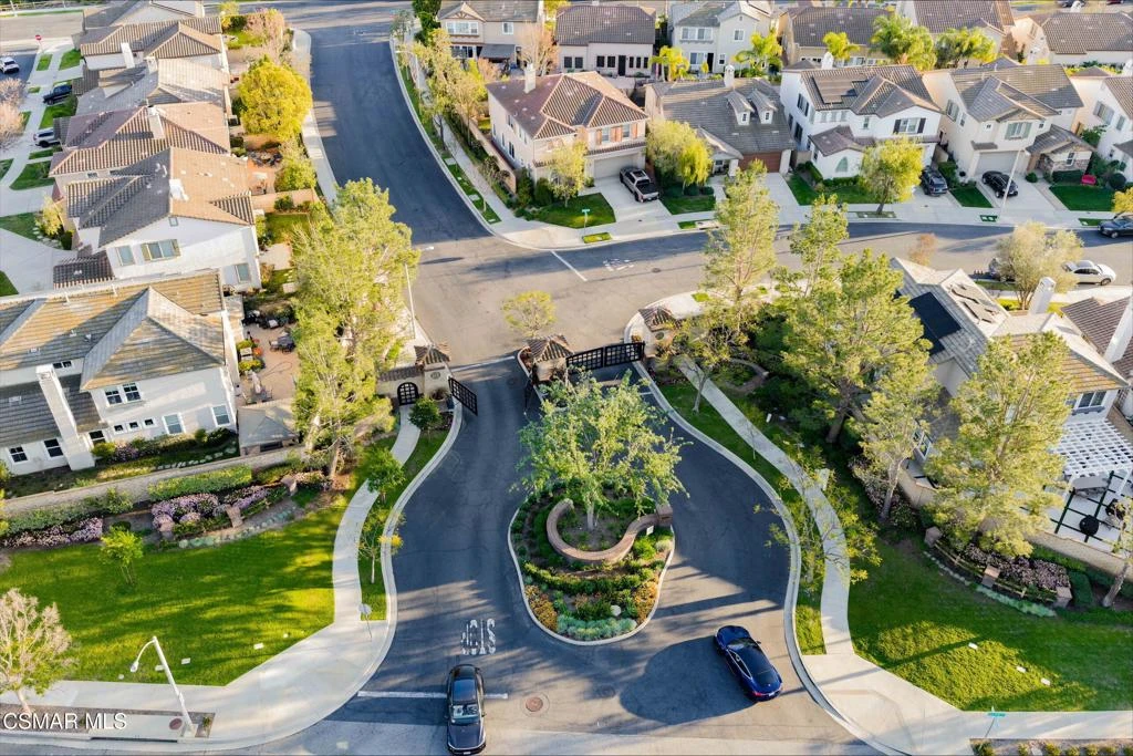 This exquisite home located in the gated Moorpark Highlands cul-de-sac community delivers enhanced privacy, breathtaking views, and a sun-drenched backyard oasis, perfect for relaxed entertaining or quiet retreats. Step inside to discover a meticulously updated residence with cutting-edge technology and downstairs office/bedroom with custom double doors. The freshly repainted exterior and new exterior light fixtures create outstanding curb appeal, while hardwood floors, and custom 4.5 inch basswood plantation shutters stained to match, deliver sophisticated warmth and seamless flow. The chef-inspired kitchen is a true showstopper, featuring stunning Quartzite countertops, an upgraded sink and faucets, elegant backsplash, a convenient pot hanger, custom light fixtures, and a reverse osmosis system servicing the sink and fridge. Prepare gourmet meals with ease using the impressive array of three GE Profile ovens (including one convection, one regular, and a 240V convection oven/microwave combo Adventium). Energy-efficient whole-house warm LED lighting, and automated bathroom light sensors enhance everyday comfort. The large primary bedroom has a sitting area which could be a gym/office/yoga retreat. The primary bath offers dual vanities, beautiful wood cabinets, walk-in closet, sunken tub, and walk-in shower. The three guest bedrooms are well appointed with custom paint/decals and the front bedrooms share a balcony! Upstairs laundry conveniently located with storage. Embracing modern sustainability and smart living, this home boasts PAID Tesla Solar for the entire house, a Tesla Powerwall in the garage, and two EV charging outlets for effortless electric vehicle ownership. Additionally, the 3-car tandem garage offers flexibility for parking or utilizing the additional space for storage, a home gym, or more! A whole-home water softener, low-flow showerheads and faucet aerators promote efficiency, while the internet-connected Rachio smart sprinkler system with climate prediction optimizes water use. Dual HVAC systems ensure zoned comfort on each floor. Seamless Alexa-enabled whole-home smart automation integrates thermostat, sprinklers, lights, door and garage door control, complemented by a Z-Wave compatible smart door lock and video doorbell. A fully monitored alarm system includes intruder alerts, integrated smoke/fire detection, camera wiring, and door sensors for peace of mind. LAN wiring throughout supports robust connectivity. Additional highlights include a custom-built stamped concrete patio, custom fire pit, and custom modern lighted stairs in the front yard. Enjoy a cozy backyard oasis with outdoor kitchen, a stainless-steel, maintenance-free patio cover, and low-maintenance landscaping, including a drought-tolerant front yard and artificial turf in the rear garden with deodorizer that is ideal for babies and pets while reducing odors for a fresher yard. An array of fruit trees and plants cover the exterior: Magnolia Trees, Champaca Tree (rare), Queen Palms, Phoenix Robolini, Meyer Lemon Tree, Orange Tree, Lime Tree, Apple Tree (varieties), Passion Fruit, Blackberries, Dragon Fruit, Blueberries (varieties), Pineapple Guava Tree, Lavender, Aloe Vera and Rosemary. This turnkey smart home combines luxurious finishes, private entertaining, and effortless automation. Community features include: hiking trails, 2 pools, playground, greenbelts, stroll or bike to Mammoth Highlands Park and more!