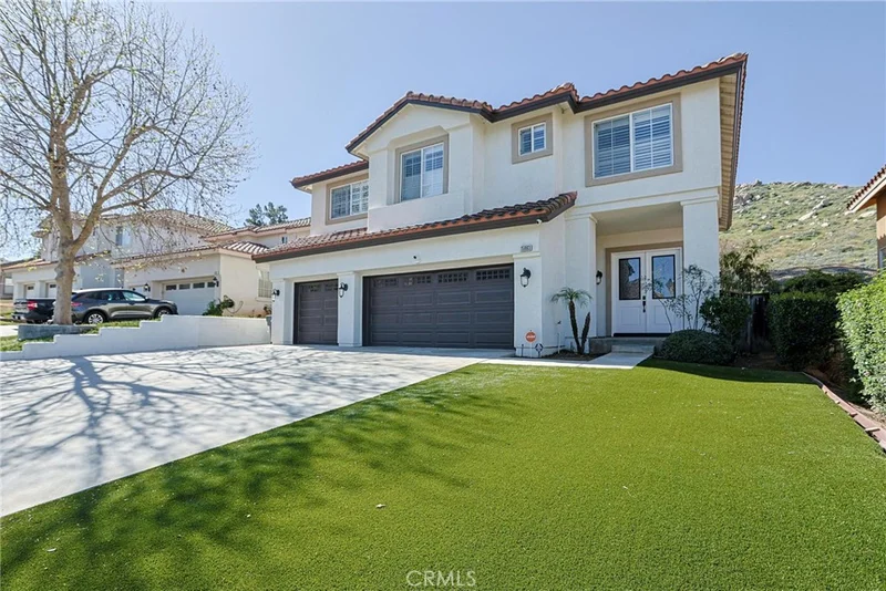 Exceptional home in a highly desirable location with the backyard overlooking the golf course. Enjoy watching golfers play from your private balcony just outside the primary bedroom while sipping your morning coffee and taking in the beautiful hills surrounding Lake Perris. The views are truly breathtaking. This spacious 3,262 square foot residence welcomes you with an inviting entrance and offers four bedrooms and three bathrooms designed for comfortable living. The open concept kitchen flows seamlessly into the family room, creating the perfect space for everyday living and entertaining. The kitchen features an island, ample cabinetry, and a casual dining area, while the formal dining room provides an elegant setting for gatherings. The extra large primary suite offers a peaceful retreat and includes direct access to the balcony where you can enjoy sweeping views of the golf course and surrounding hills. A cozy fireplace enhances the warmth and charm of the living space. Upstairs you will find a generous loft that can easily serve as a game room or media room, providing a flexible area for entertainment, work, or relaxation. Step outside to a fully landscaped backyard that offers privacy and stunning mountain views. The front yard captures beautiful city light views in the evening, creating a truly special setting both day and night. Additional features include a three car garage and a location within a well maintained and desirable neighborhood near Lake Perris. This home combines space, privacy, and spectacular views in one exceptional opportunity.