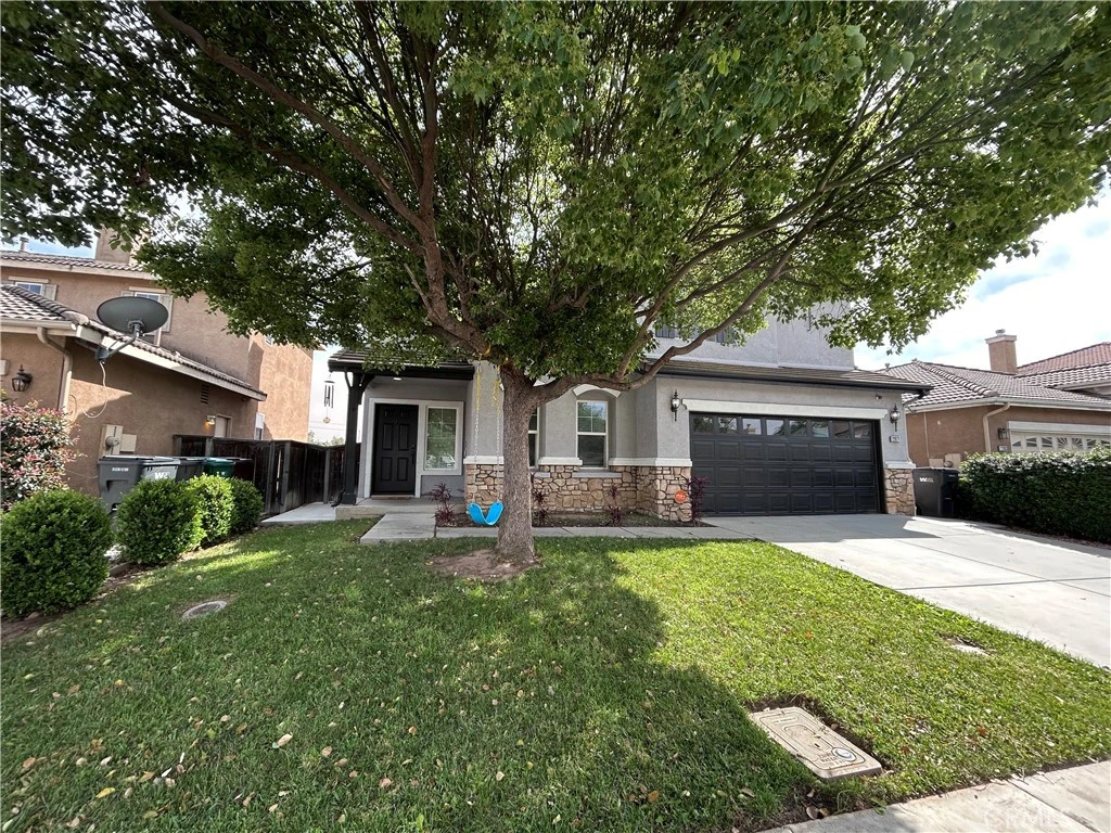 Welcome to Moreno Valley with great curb appeal! This spacious and versatile home offers 4 bedrooms and 2.5 bathrooms! The home is ideal for growing households, guests, or a home office setup. From the curb, the home stands out with its attractive stone siding, a complementary paint scheme, and decorative shutters along the windows. a 2-car garage and wide driveway provide for ample parking. Step inside the home and you’re welcomed by a tile entry! A downstairs office area can potentially function as an additional sleeping area, if needed. Step into the living room which features a fireplace and opens seamlessly to the kitchen, creating a comfortable and connected space for everyday living and entertaining. The kitchen comes equipped with a stainless steel 5-burner stove, microwave hood/vent, dishwasher, and a refrigerator. White tile countertops, shaker-style cabinets, and a pantry for extra storage. A dedicated laundry room with built-in shelving. A convenient downstairs bathroom adds to the home’s functionality. Upstairs, you’ll find four bedrooms, including the converted loft, plus a landing area with built-in shelving. The upstairs primary bedrooms offer ample natural light. In addition, dual closets, and a private bathroom complete with double vanity sinks, a shower/tub combination, and a separate water closet for additional privacy. The upstairs hall bathroom also features a double vanity and full shower/tub combo, making it well-suited for busy households. Step outside through the sliding glass door to a low-maintenance backyard featuring a large concrete area with brick accents and a generously sized covered patio, perfect for relaxing or hosting. With central heating and air conditioning and a flexible, comfortable layout, this home offers buyers a strong opportunity for space, function, and value in a well-established Moreno Valley neighborhood.
