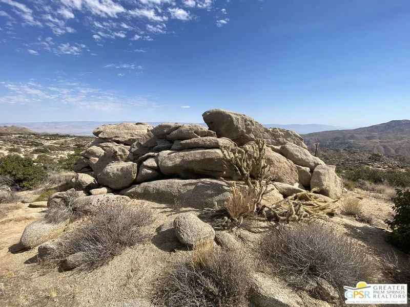 Pinyon Crest is a remarkable and unique mountain enclave of custom homes high above Palm Desert. Close enough to be shopping on El Paseo in under a half hour. Surrounded by mountain peaks, canyons and natural boulder formations (This property has two). Located at 3800 feet of elevation with sweeping views all around and Valley views from Palm Desert to Indian Wells. At 2 1/2 acres, this land gives you room to breathe. The lot is elevated from the road. Views to the adjacent canyon and Coachella Valley are unobstructed. The nighttime lights of the Valley are sublime. With direct access to outstanding hiking, biking and plenty of recreational space to get out and be with nature. The community is social if you like but large enough for ample personal space. Pinyon Crest is in an HOA. The HOA will need to approve building plans and new construction will be a single family residence of at least 1600 sf (allowing a variety of architectural styles) The HOA is the water provider to the homes and maintains the roads in the community. This is a prime opportunity to build your dream home on a piece of land that will speak to you. The Seller may offer financing.