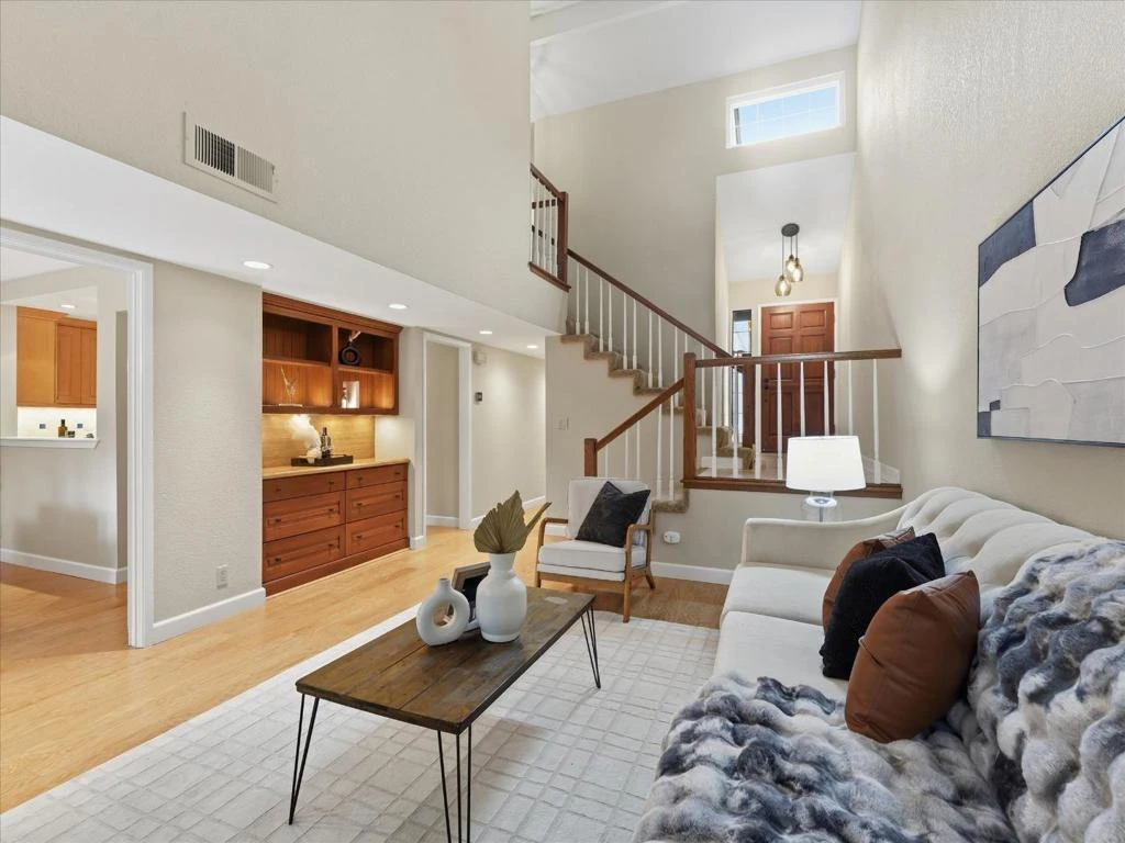 Welcome home to this exceptional, nicely remodeled townhouse in the highly coveted Mountain View Manors complex. Nestled within a quiet, tree-lined oasis, this stunning 3 bedroom, 2.5 bath home offers 1,475 sqft of beautifully appointed living space on a generous 4,400 sqft lot. From the moment you arrive, this home sets itself apart delivering privacy, elegance and space. It lives and feels like a single-family home. You will love the roaring high ceilings, tasteful upgrades, and seamlessly flowing living and dining area which makes it ideal for everyday living and entertaining. The spacious kitchen features modern finishes and generous counter space. Three bedrooms upstairs include a primary suite with en-suite bath and ample closet space.The beautifully landscaped, large patio is a rare outdoor sanctuary, perfect for dinner parties, morning coffee, and relaxing among lush greenery. An attached garage adds everyday convenience. Just minutes from Downtown Mountain View, enjoy world-class dining, the farmer's market, and easy access to Caltrain and VTA Light Rail. Google, NASA Ames, and top Silicon Valley employers are nearby. Families will love the acclaimed Mountain View Whisman and A+ rated Mountain View-Los Altos Union High School Districts, among the finest in the area.