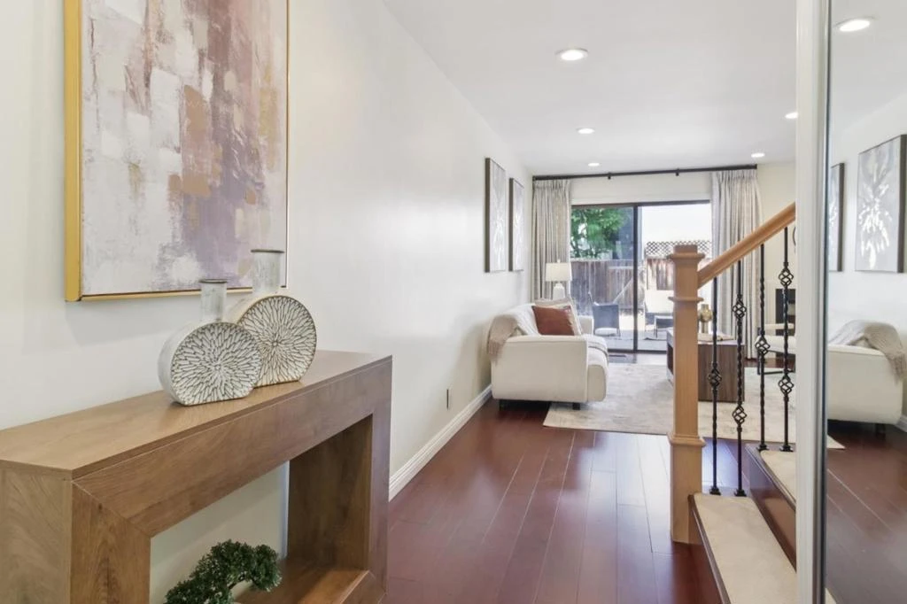 Welcome to this beautifully remodeled townhome that lives like a single-family residence - offering exceptional space, privacy, and comfort with the ease of low-maintenance living. Ideally situated in one of Mountain Views serene and sought-after neighborhoods, this home is also within the highly coveted Los Altos HS district. Enjoy a short stroll to vibrant Castro Street, with close proximity to Google headquarters, and convenient access to Highways 101, 85, and public transportation. Designed for both everyday living and entertaining, the main level showcases a warm and inviting living room with a fireplace, a formal dining area, and a beautifully updated gourmet kitchen - all filled with natural light. Two sliding glass doors create seamless indoor-outdoor flow, opening to a spacious private backyard retreat thats perfect for relaxing or hosting. A rare direct-access two-car garage adds convenience and a true single-family feel. Upstairs, the expansive primary suite features soaring vaulted ceilings, generous closet space, and a remodeled en-suite bath. Two additional well-sized bedrooms share an updated full bathroom. Thoughtfully upgraded throughout, this home offers a truly move-in-ready experience. A rare opportunity to enjoy refined living in the heart of Silicon Valley.
