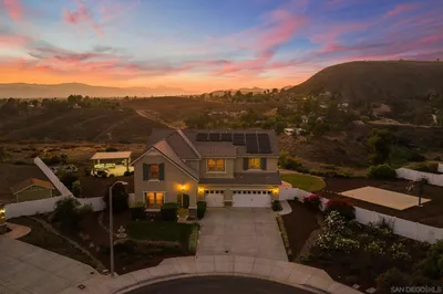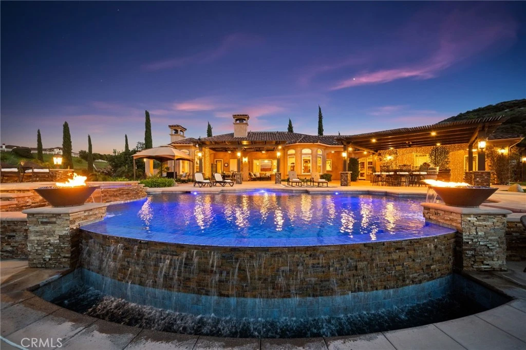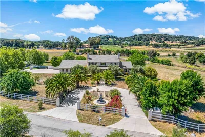 Private 5.65 acres of rolling hills in the peaceful community of La Cresta, 21051 Via Sevilla is a contemporary single-story estate offering 5,152 square feet of refined living. This property blends luxury, privacy, and the natural beauty of Southern California’s countryside into one exceptional retreat. The home features five spacious bedrooms, five bathrooms, an office, a game room, a library, and an exercise room—each space thoughtfully designed for comfort and versatility. Inside, coffered lighting and an effortless layout create a warm, welcoming flow. The gourmet kitchen stands out with high-end appliances, an oversized walk-in pantry, and a generous center island, making it perfect for everyday living and effortless entertaining. It opens to expansive living and dining areas, where large windows frame sweeping views of the surrounding landscape. A stylish wet bar and a temperature-controlled wine room—capable of storing up to 400 bottles—add an elevated touch for those who love to host. The primary suite is a true sanctuary, complete with two fireplaces, a spa-inspired bathroom, and dual walk-in closets. Each additional bedroom includes its own en-suite bathroom and walk-in closet, showcasing the home’s attention to detail and craftsmanship. Step outside to a resort-style oasis featuring a sparkling pool, spa, and a fully equipped outdoor kitchen. The grounds are beautifully landscaped and enhanced by a charming boutique vineyard—an exceptional feature for wine enthusiasts. A high-capacity 100 GPM well provides ample water for the vineyard and fruit trees. With generous flat land, the property offers endless possibilities: add equestrian facilities, build a guest house, create additional parking, or simply enjoy the open space and tranquility. Known for its serene, upscale lifestyle, La Cresta provides the perfect backdrop for this remarkable estate. With panoramic mountain views, unforgettable sunsets, and room to roam, this property offers a rare opportunity to live in harmony with nature while enjoying the finest comforts of luxury living.
